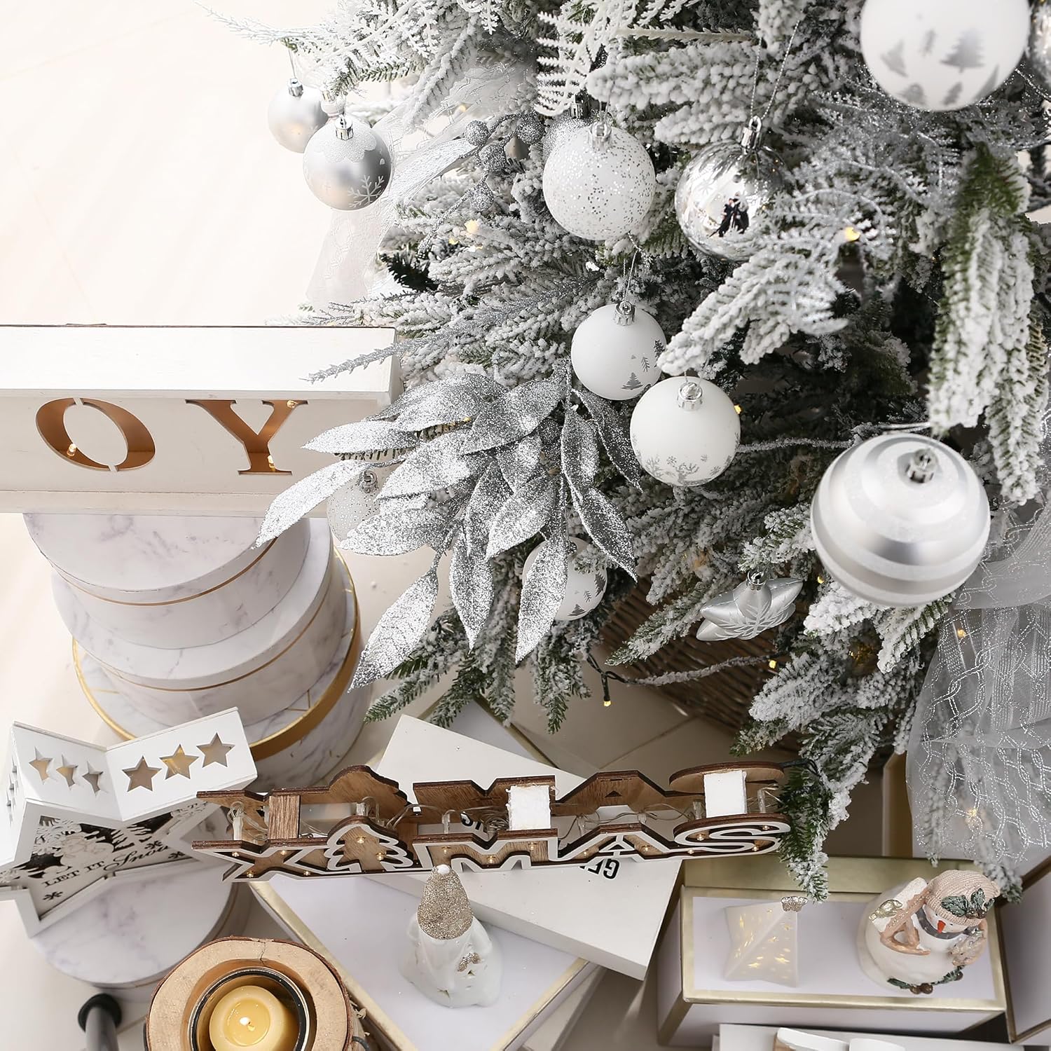 Sea Team 60mm/2.36" Delicate Contrast Color Theme Painting & Glittering Christmas Tree Pendants Decorative Hanging Christmas Baubles Balls Ornaments Set - 30 Pieces (Silver & White)