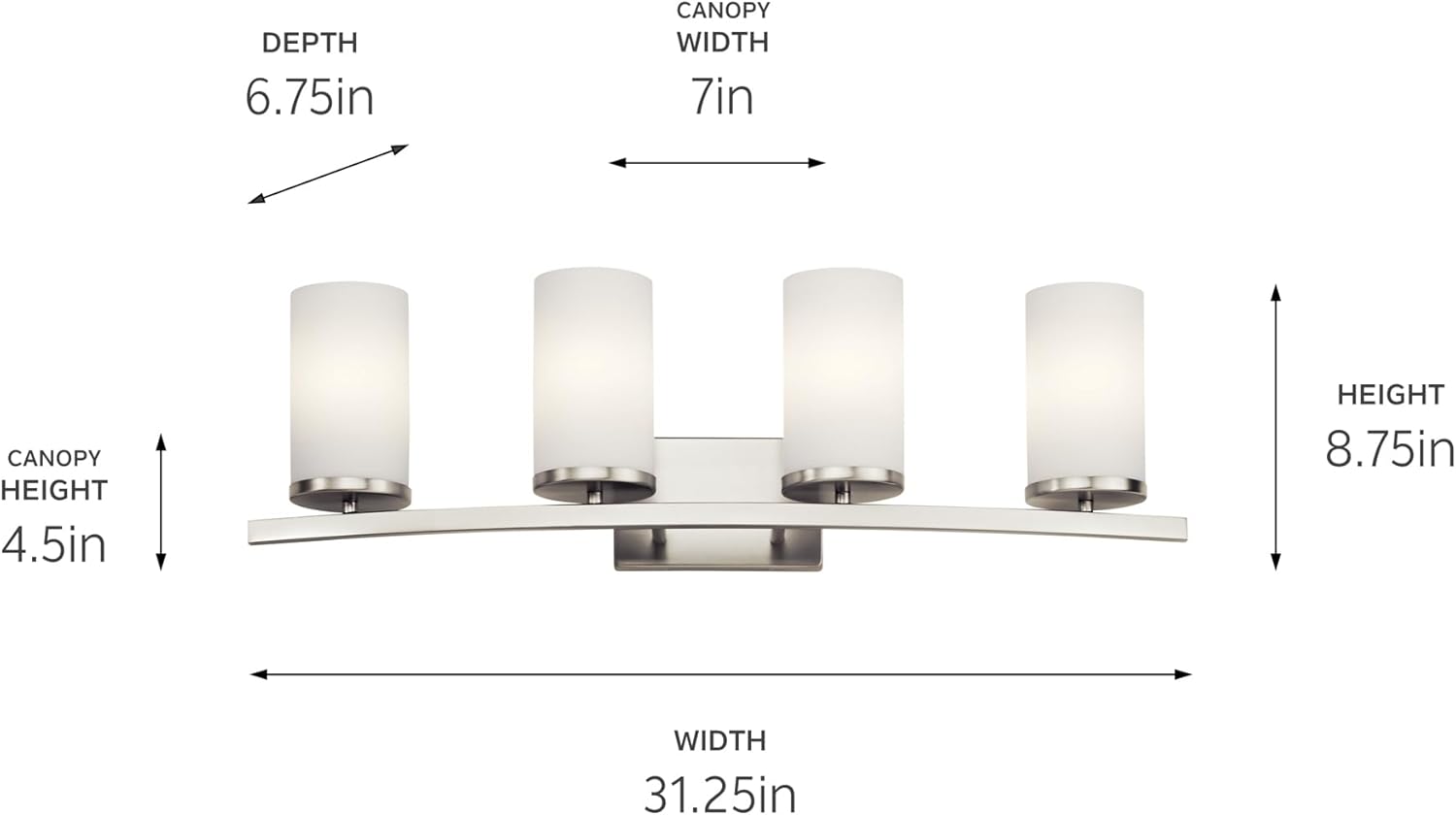 KICHLER Crosby 31" 4 Light Vanity Light Satin Etched Cased Opal Brushed Nickel