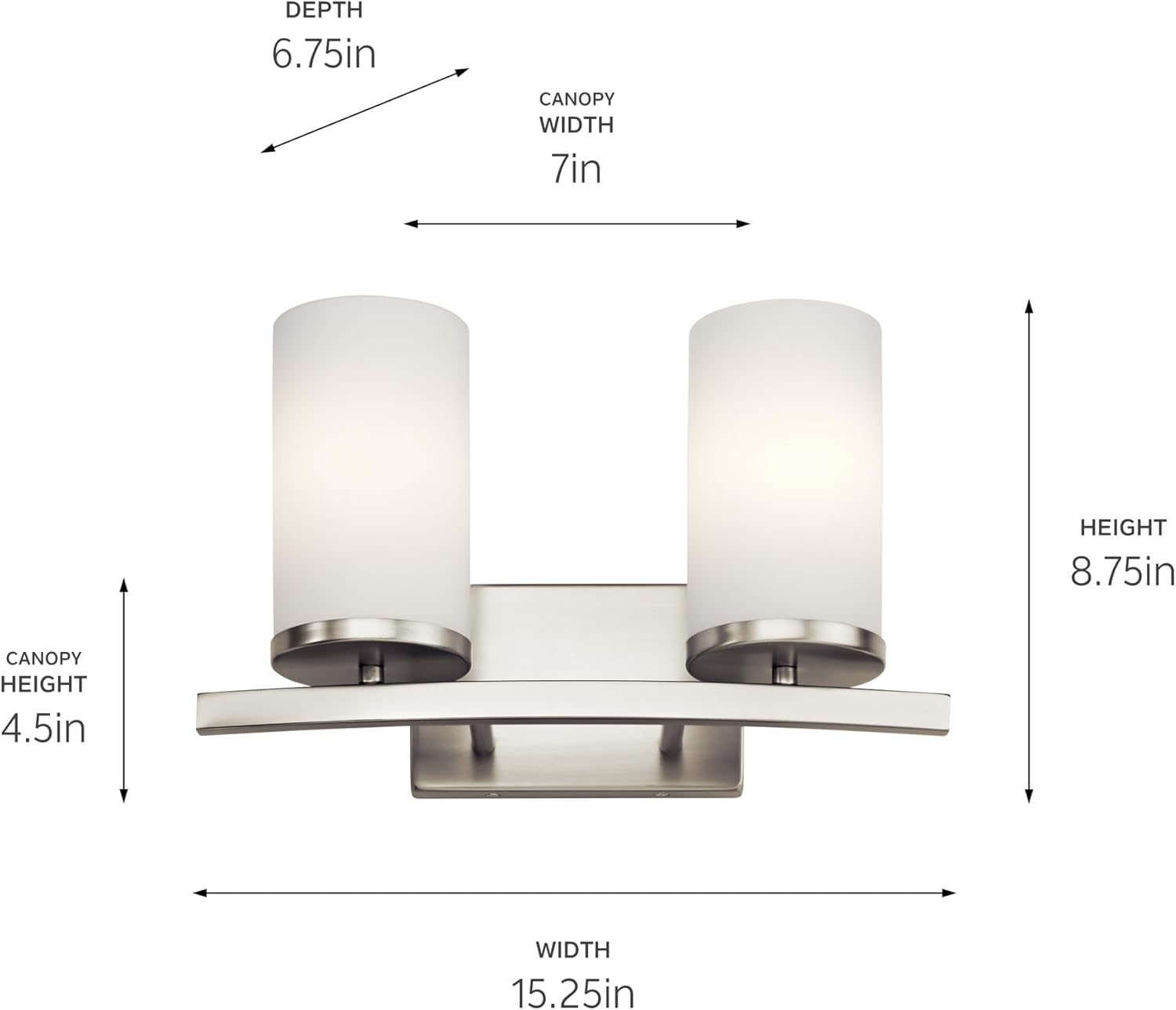 - The 2 light Crosby vanity light is perfect in a bathroom or powder room.