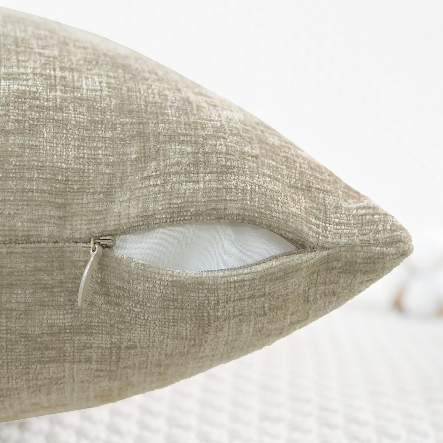 CaliTime Throw Pillow Covers Decorative 18 X 18 Inches Pack of 2 Cozy Chenille Cushion Cases for Couch Sofa Bed Living Room Home Light Taupe
