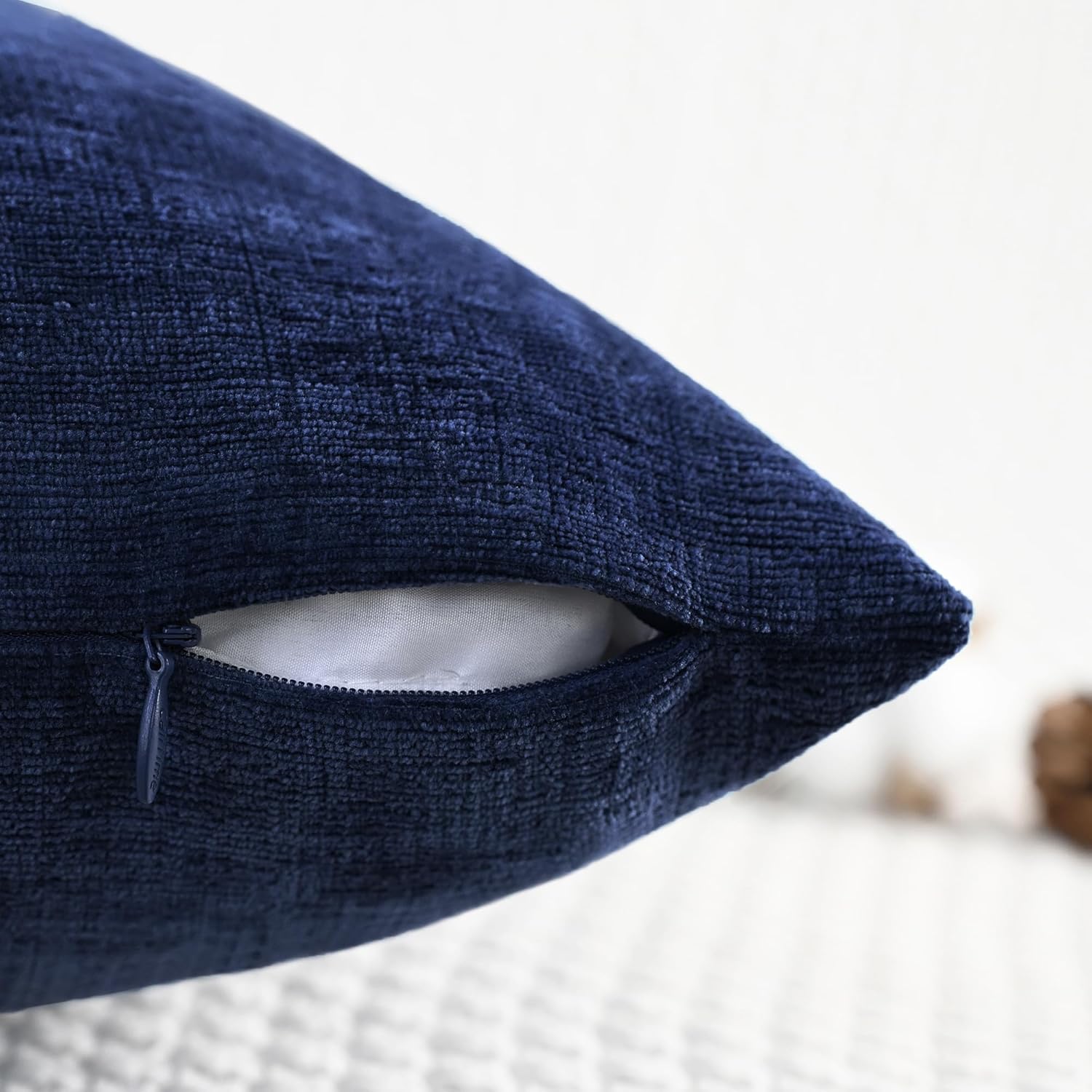 CaliTime Throw Pillow Covers Decorative 20 X 20 Inches Pack of 2 Cozy Chenille Cushion Cases for Couch Sofa Bed Living Room Home Navy Blue