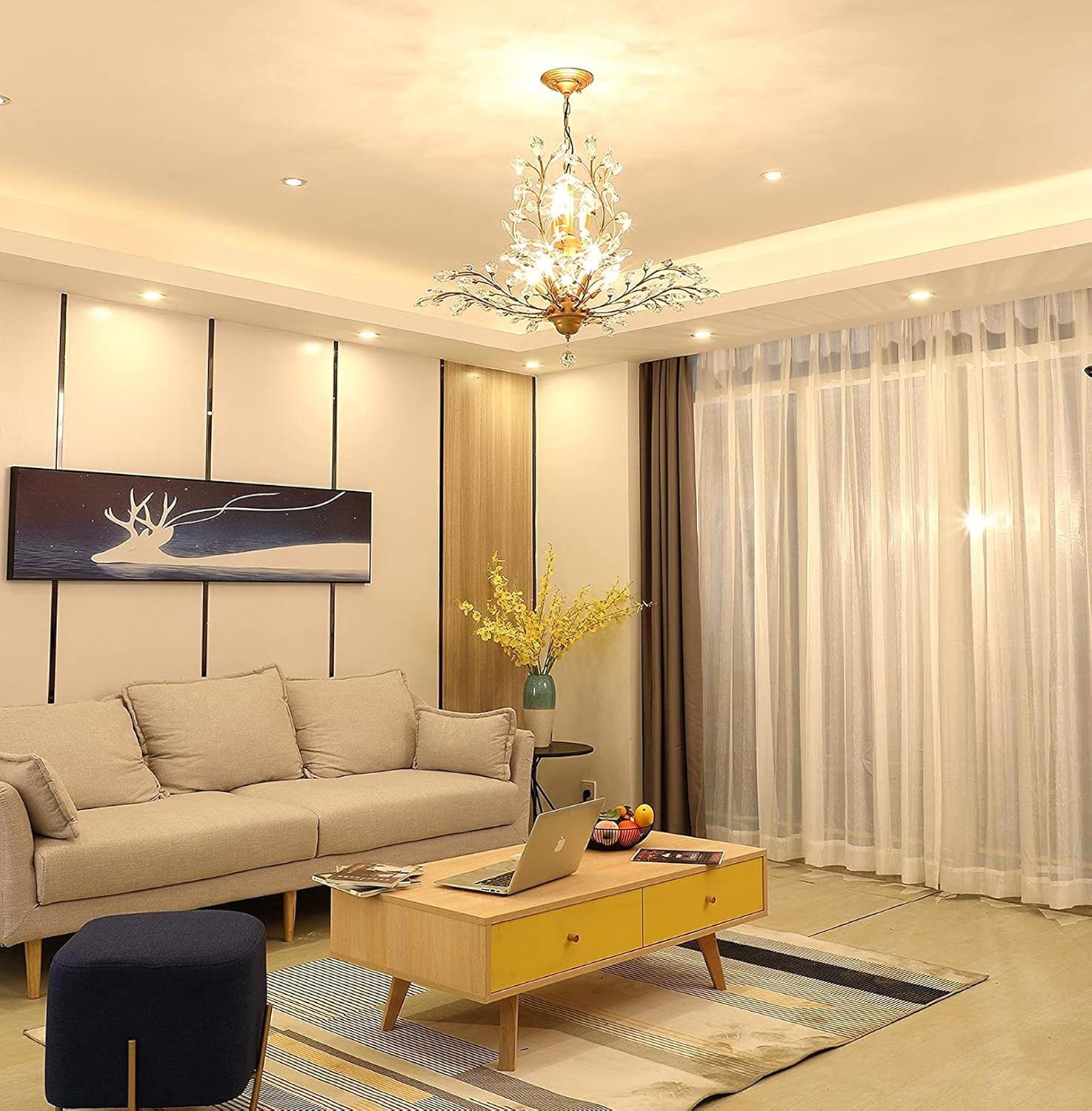 - ARTIST DESIGN: This vintage & modern crystal chandelier is beautifully decorated. Use transparent glass crystals to capture and reflect the light of the bulb. This chandelier light fixture can create a perfect atmosphere wherever it is placed! Push button switch, Paint Process, Stable performance, Long service life.