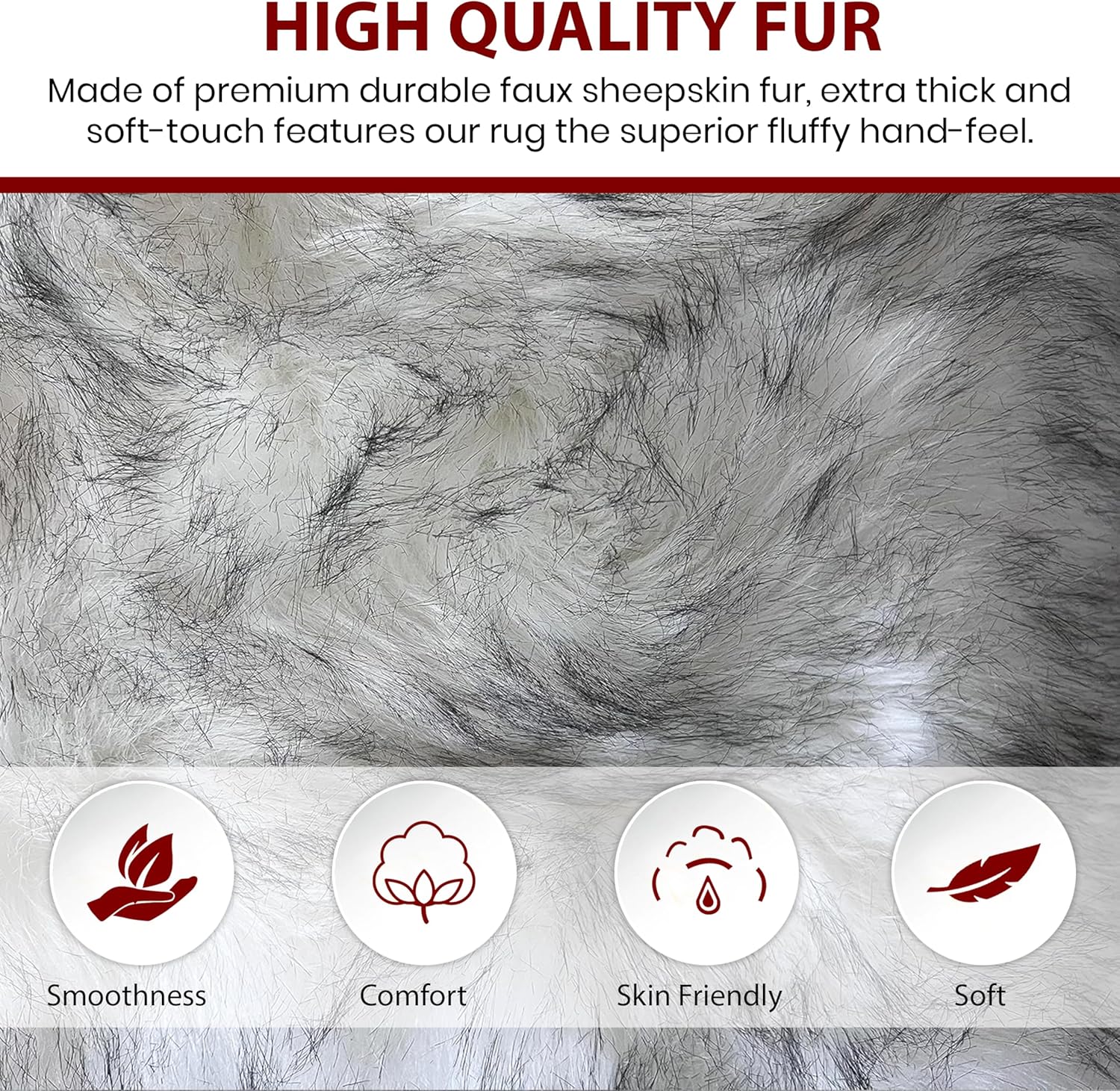 - ULTRA SOFT TOUCH FAUX FUR RUG: The soft materials of this shag rug is easy to clean, cozy on your feet as you walk, and make a perfect complement to your home with this rug. The collection features soft feeling sheepskin rug acrylic yarns furry rug that makes it easy to get cozy and delightful to touch. Faux sheepskin rug ensures its good durability and comfortable touch.