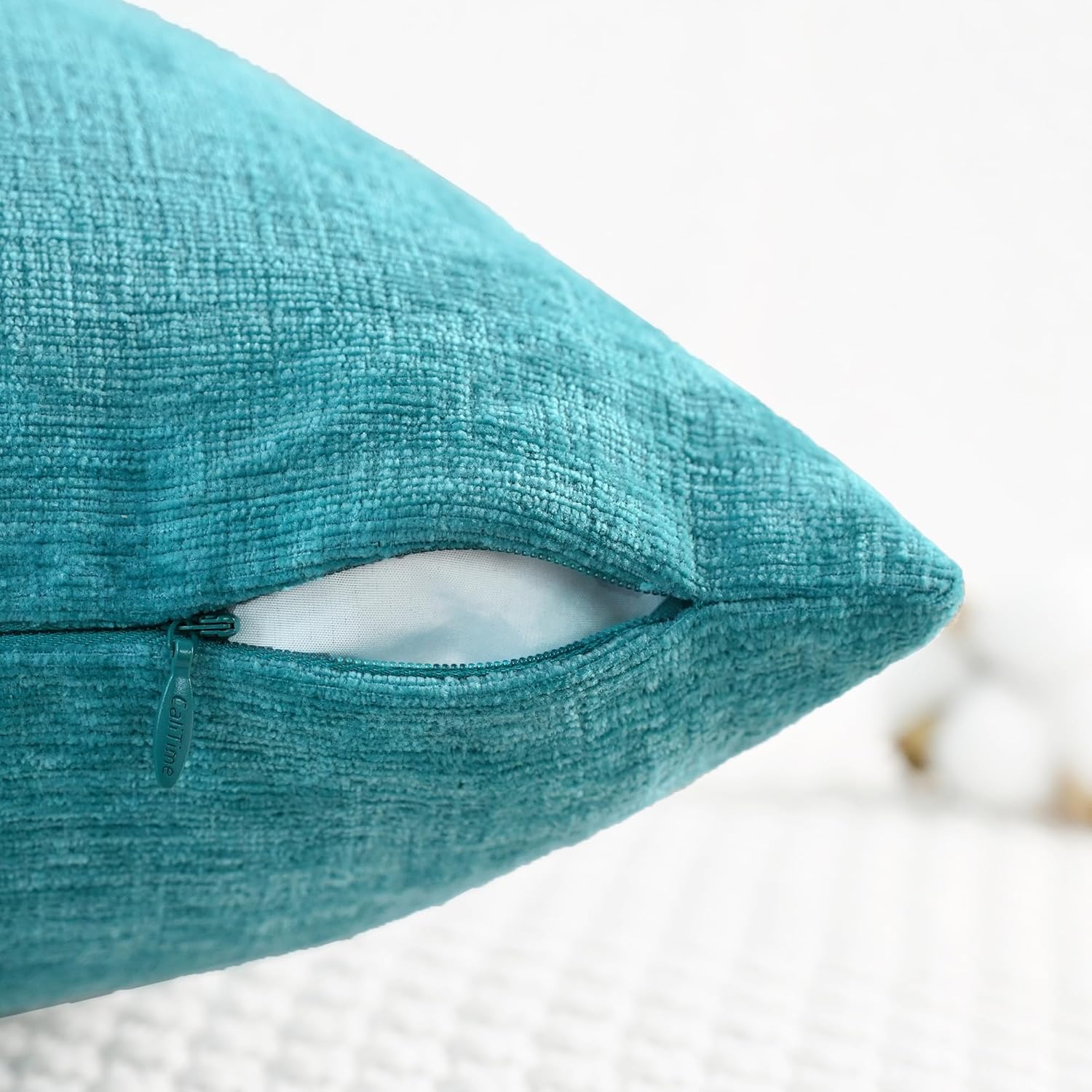 CaliTime Throw Pillow Covers Decorative 16 X 16 Inches Pack of 2 Cozy Chenille Cushion Cases for Couch Sofa Bed Living Room Home Lake Blue