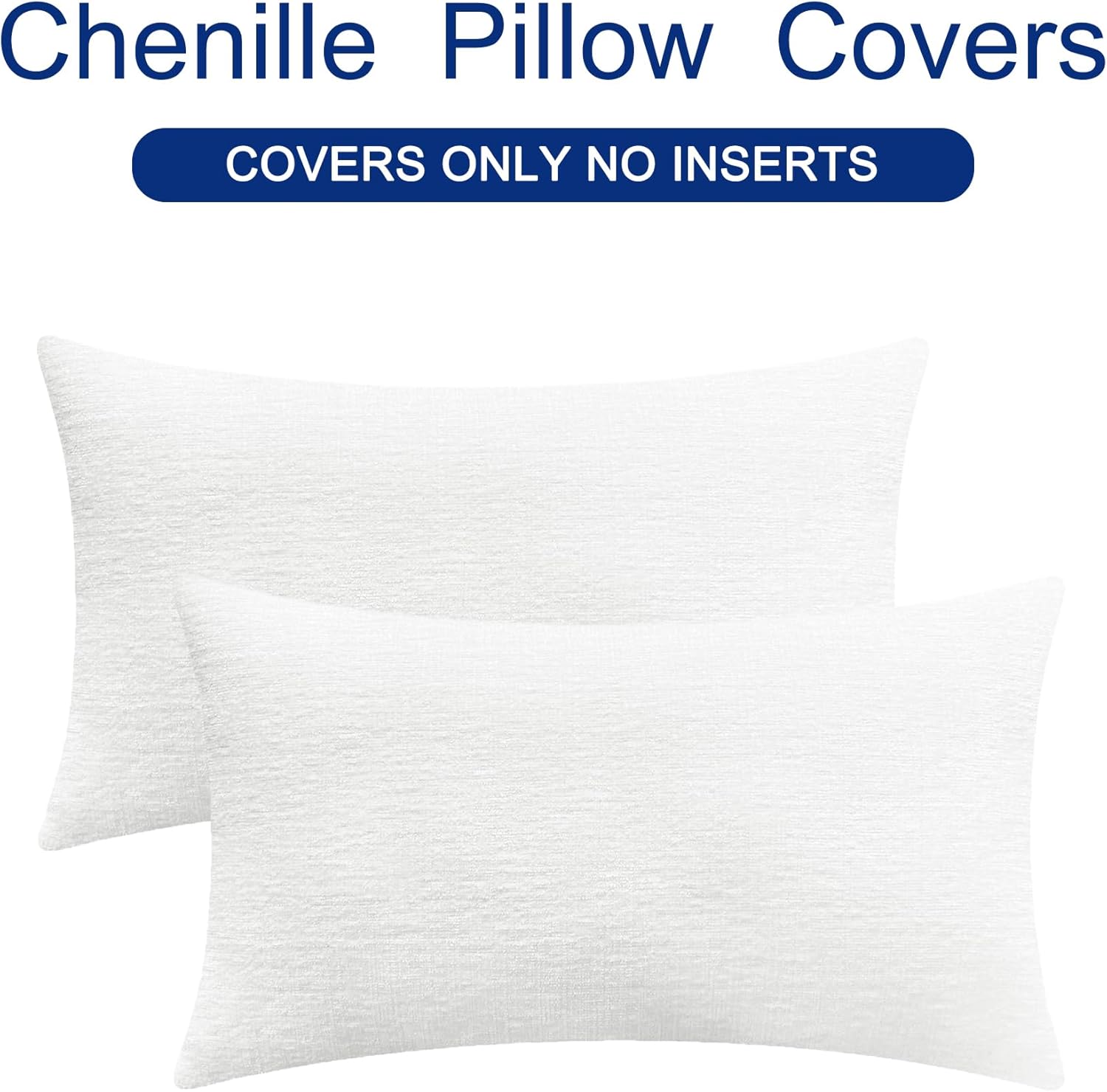 CaliTime Throw Pillow Covers Decorative 12 X 20 Inches Pack of 2 Cozy Chenille Cushion Cases for Couch Sofa Bed Living Room Home True White