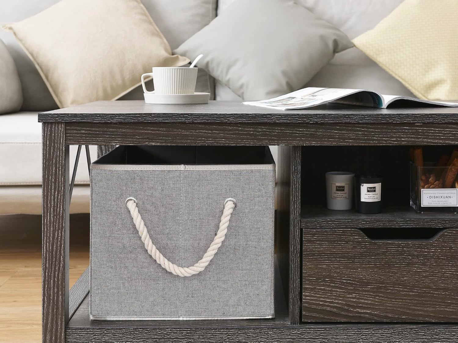 - Closet baskets feature two soft rope handles for comfortable grasping and easy carrying.