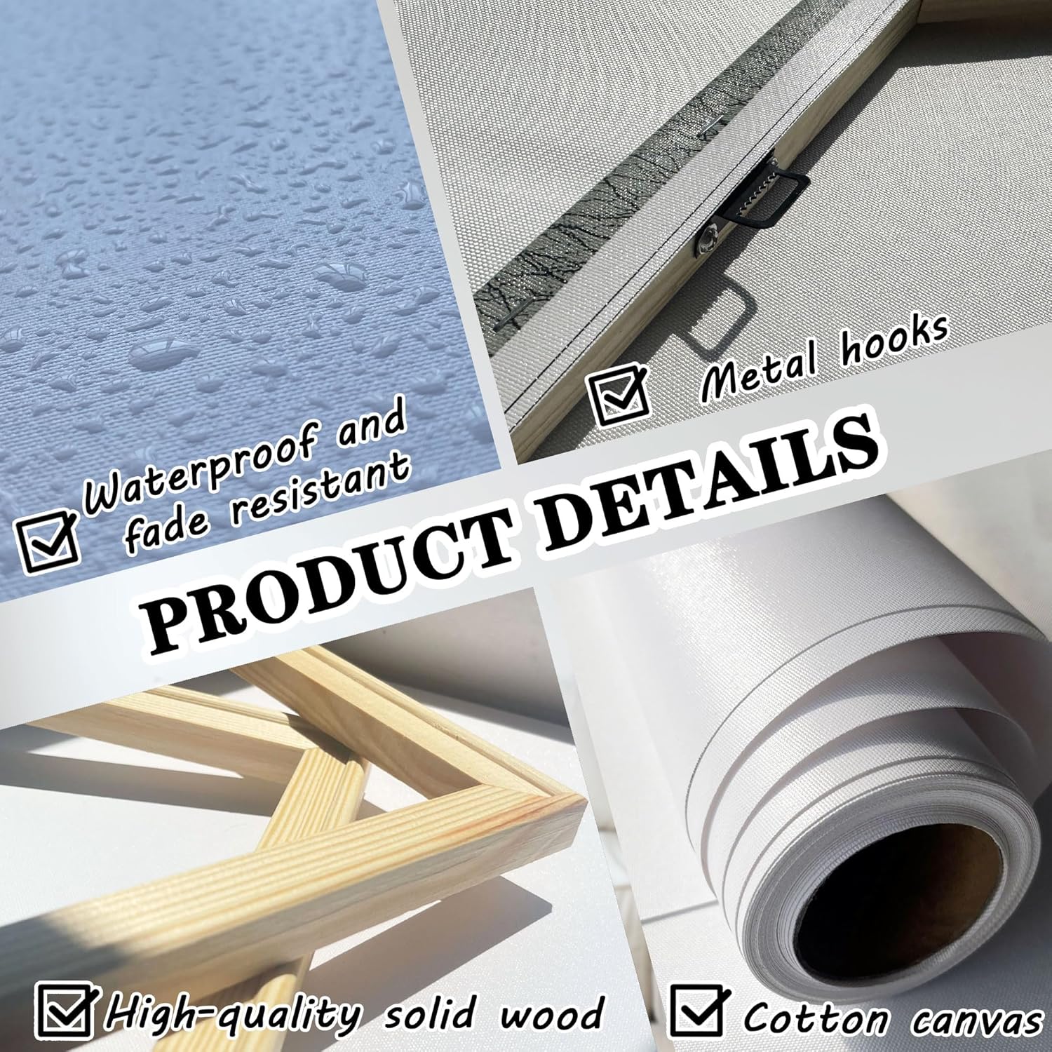 - PACKAGING:this canvas wall art is framed,the frames made with light wood,have black hooks and white nails,easy to hang.wrap in plastic wrapper and sealed in carton,protect the canvas picture.