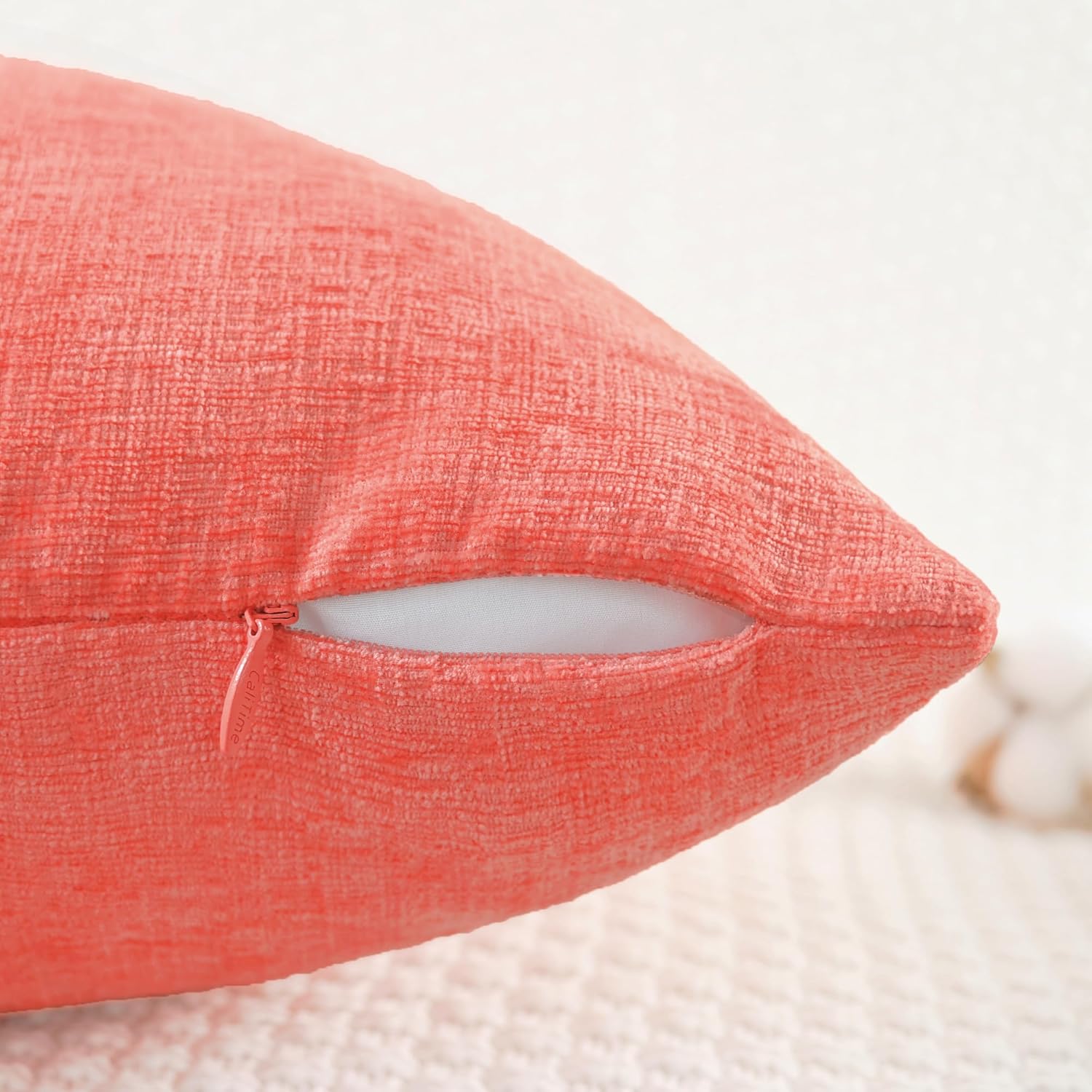 CaliTime Throw Pillow Covers Decorative 20 X 20 Inches Pack of 2 Cozy Chenille Cushion Cases for Couch Sofa Bed Living Room Home Living Coral