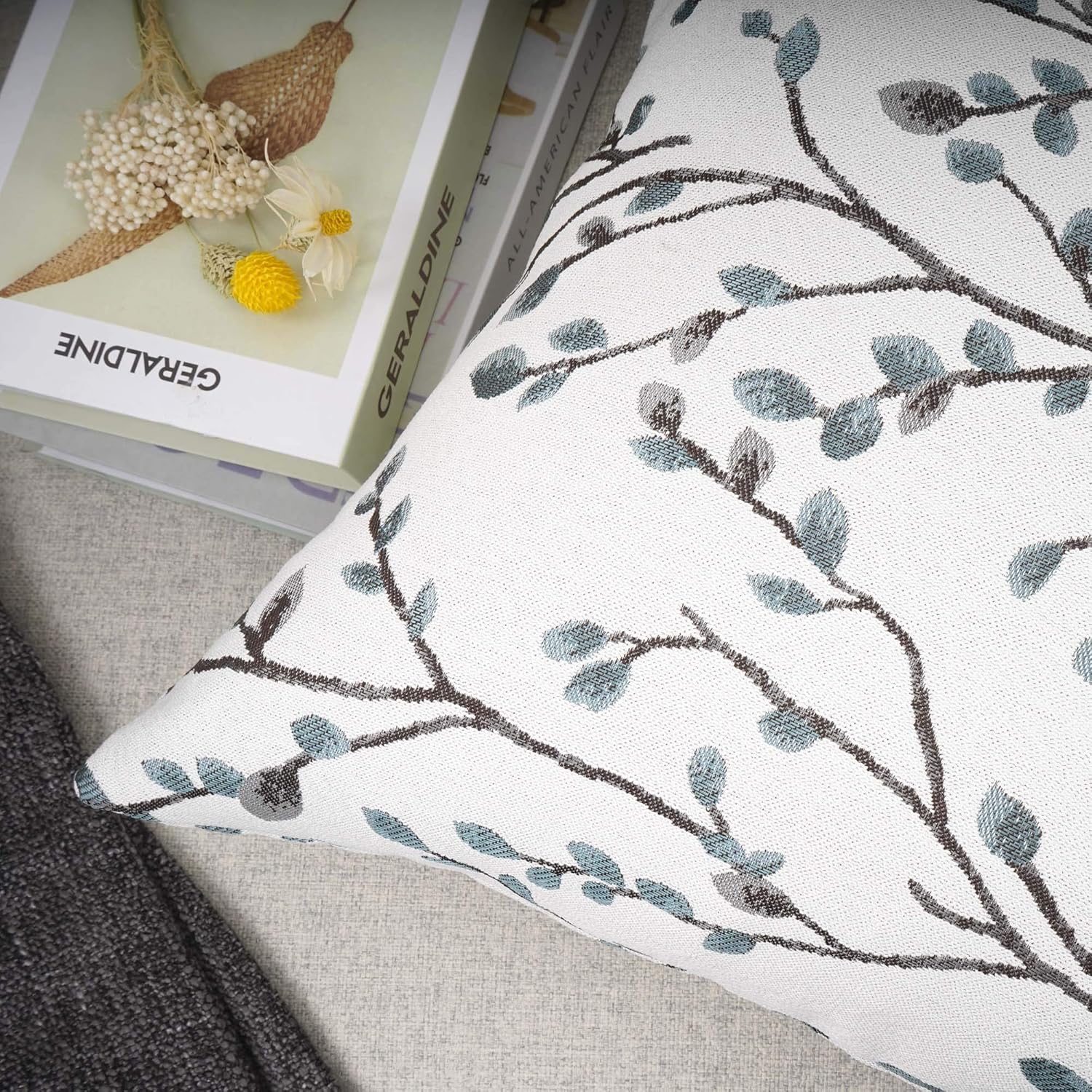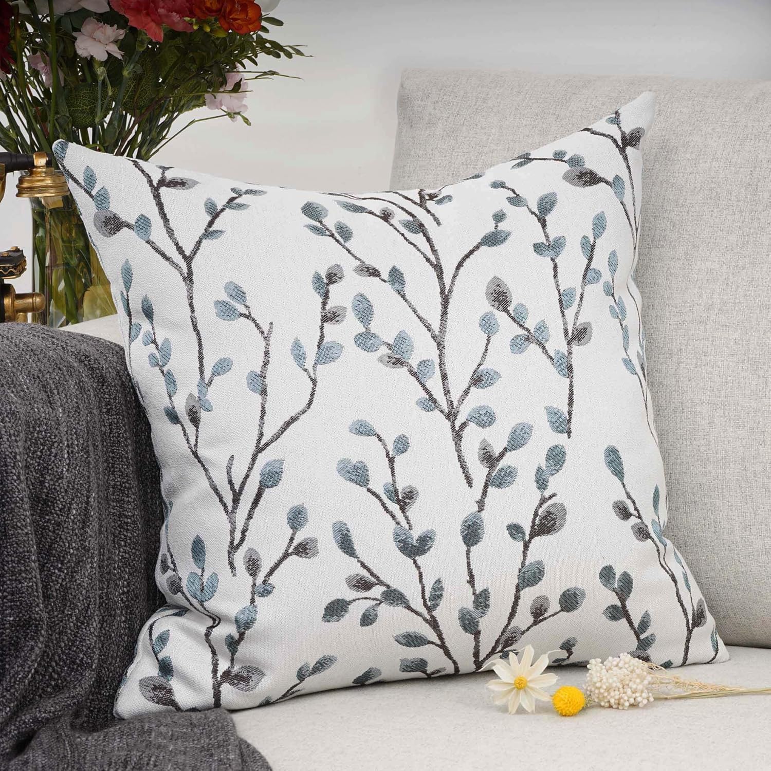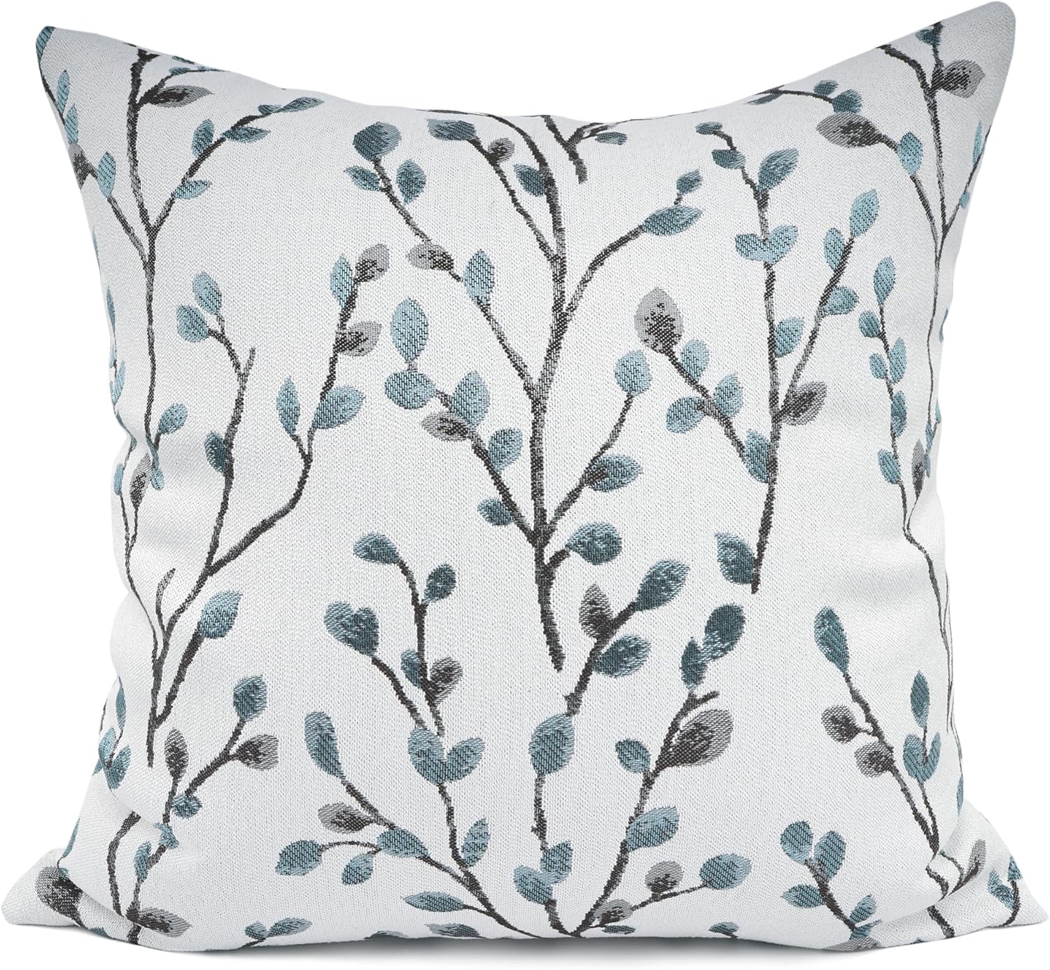 YOUR SMILE Classical Embroidery Jacquard Teal Leaf Pattern Square Decorative Throw Pillow Case Cushion Cover 18x18 inch