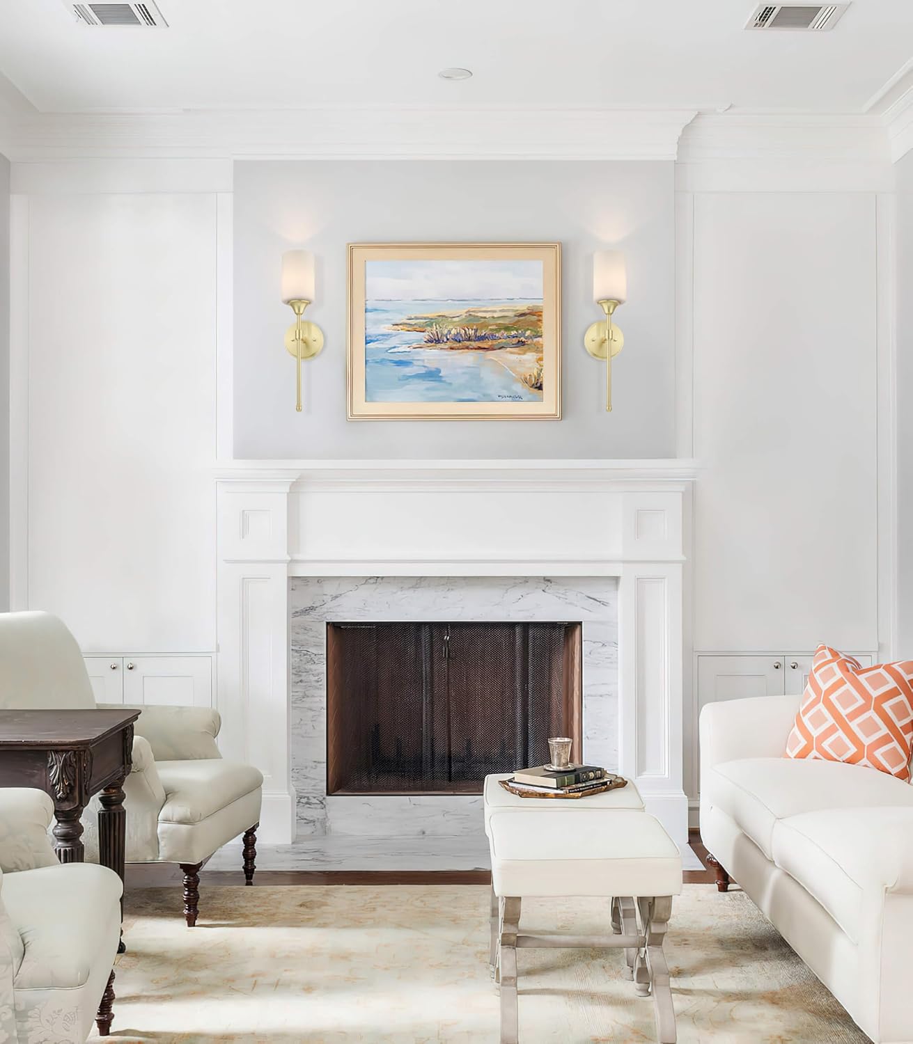- CLASSIC & TRANSITIONAL DESIGN: sconces wall lighting in satin brass finish pairs simply harware body with white glass shade illumitated a warm light shine to bathrooms, bedrooms, corridors, entryways, hallway, restaurant, dinning and living areas