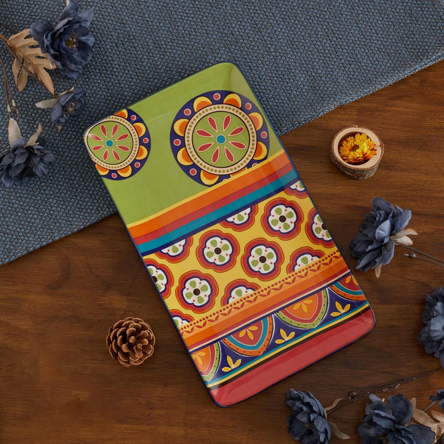 Bico Tunisian Ceramic 14 inch Rectangular Serving Platter, Set of 2, for Serving Salad, Pasta, Cheese, Ham, Appetizer, Microwave & Dishwasher Safe