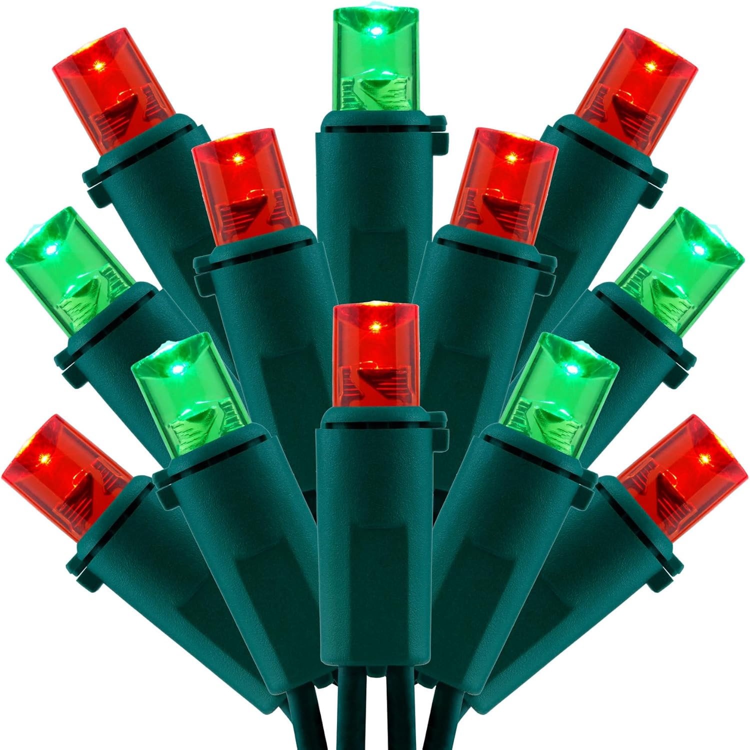 200 Count Red Green Wide Angle LED Christmas Lights, 66 ft Green Wire UL Certified Commercial Grade 5mm Holiday String Light Set (Red & Green)