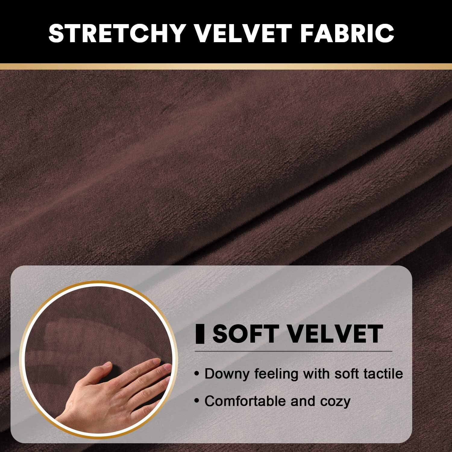 PrinceDeco Velvet Sofa Cushion Covers, Stretch Couch Cushion Covers for Individual Seat Couch Slipcover Sets Furniture Protector for Loveseat Sofa Cushion(Each Width Up to 29.5", Brown)