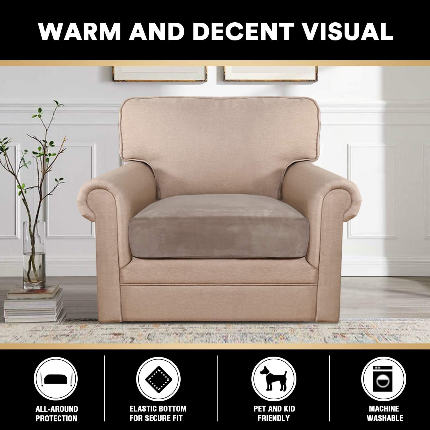 PrinceDeco Velvet Stretch Couch Cushion Cover Soft Cushion Slipcover for Chair Cushion Furniture Protector Seat Cushion Sofa Cover (Width Up to 29.5", Taupe)