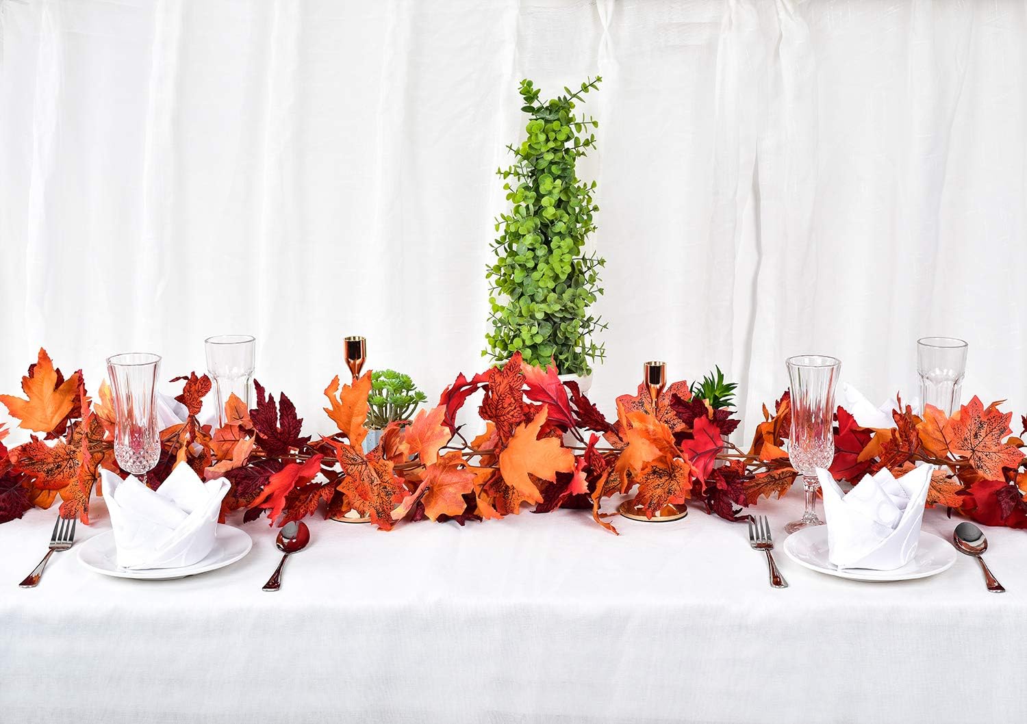 - 【Hanging Garland 】Maple leaf garland is perfect for Indoor, Outdoor, Autumn, Wedding, Door, Fireplace, Thanksgiving, Festival, and Dinner Party, as a kind of hanging plants, it can also decorate balcony, garden, wedding, table, swing stand, stair banisters, restaurants, office.