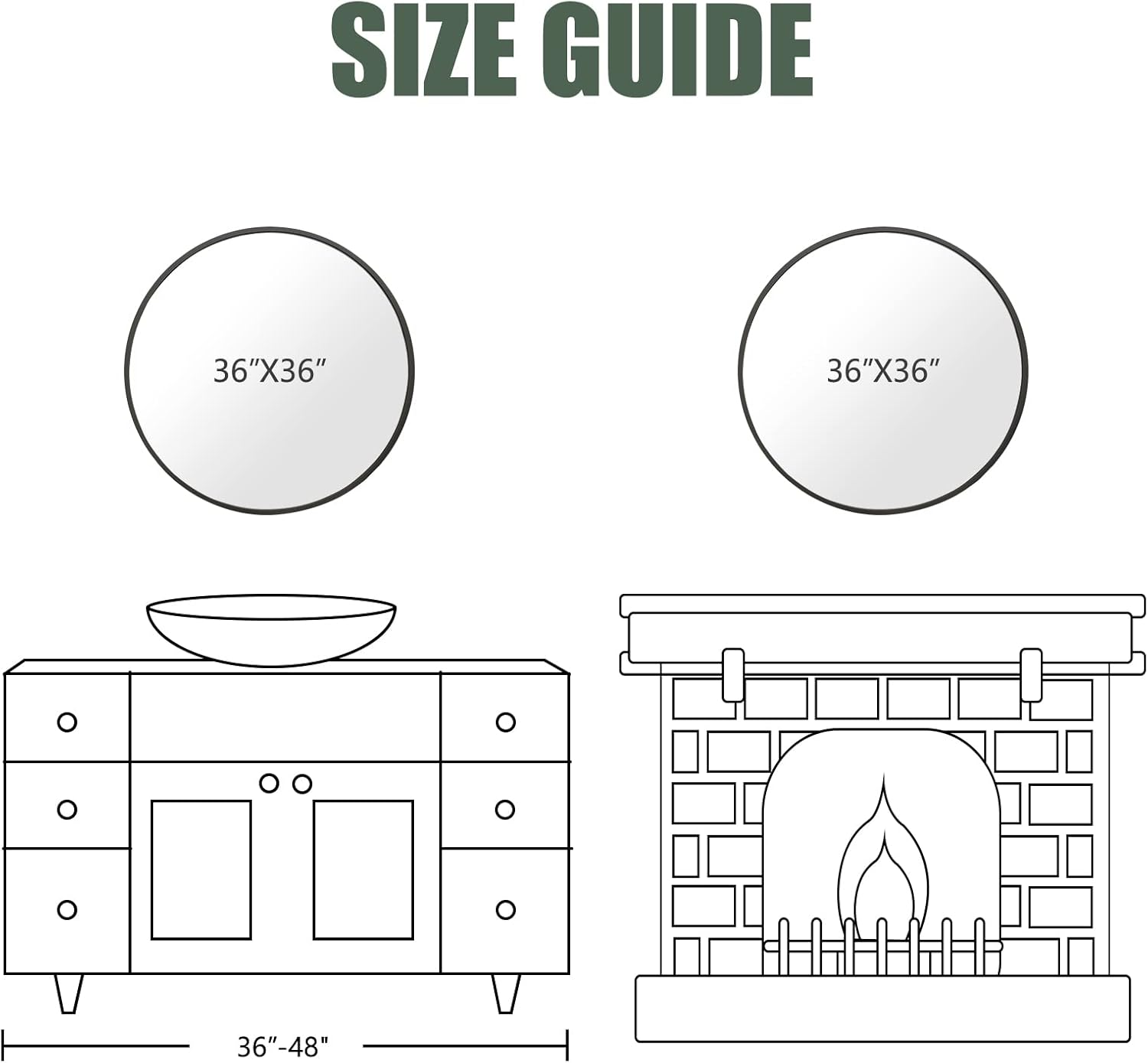 - Decorative Mirror: 36 inches diameter large round mirror can visually make your home more spacious and more inviting while can serving as functional wall art, Add a glamorous view to your walls, completing your modern, rustic, or farmhouse room decor