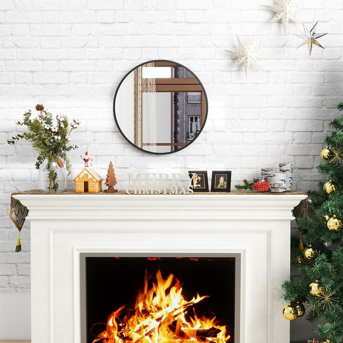 - Decorative Mirror: 18 inches diameter round mirror can visually make your home more spacious and more inviting while can serving as functional wall art, Add a glamorous view to your walls, completing your modern, rustic, or farmhouse room decor