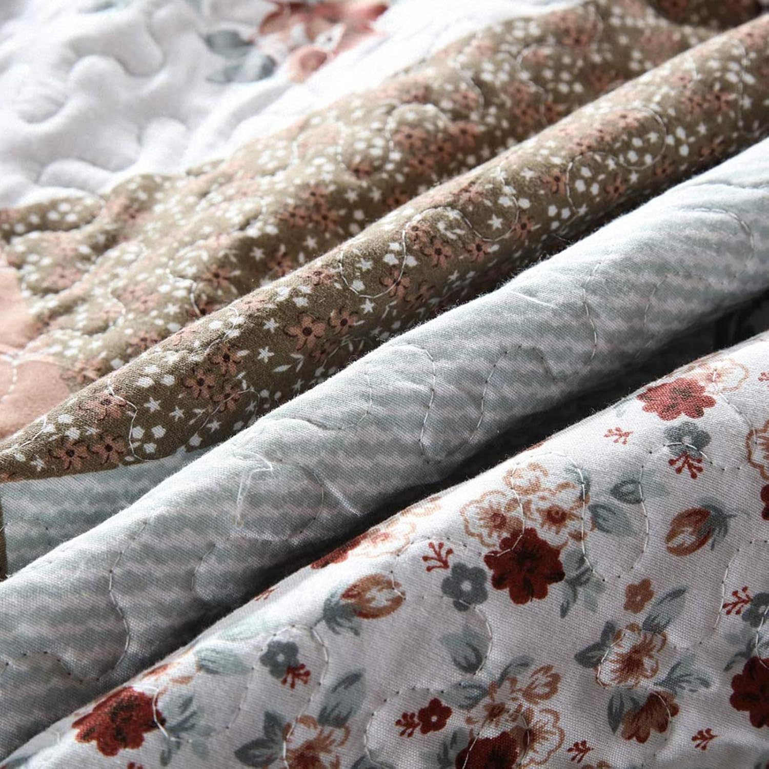 NEWLAKE Quilt Bedspread Sets-Checkered Floral Reversible Coverlet Set,King Size