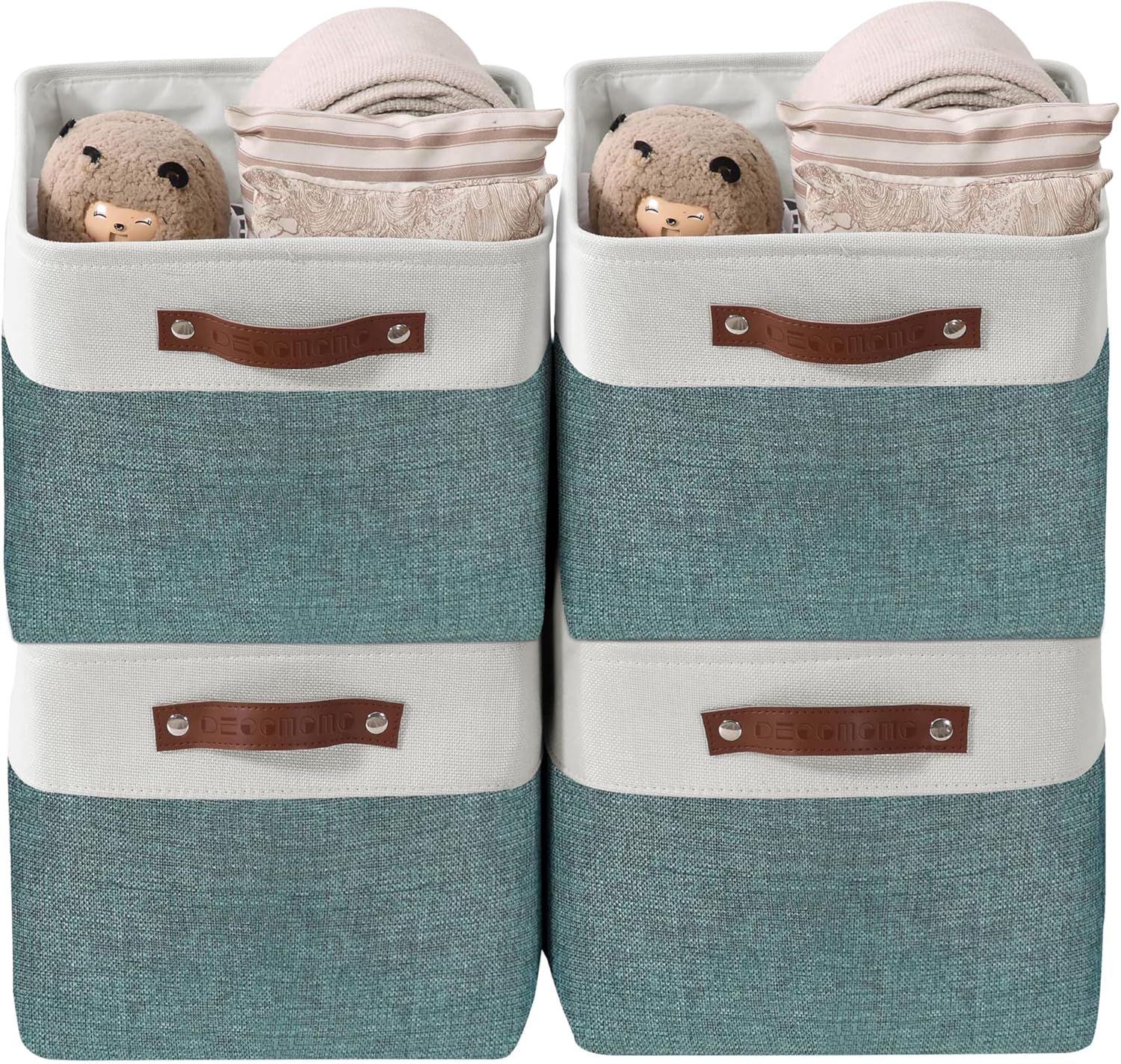 DECOMOMO Storage Bins Fabric Storage Baskets for Shelves, Linen Closet Organization Toys Nursery (Green and White, Large - 4 Pack)