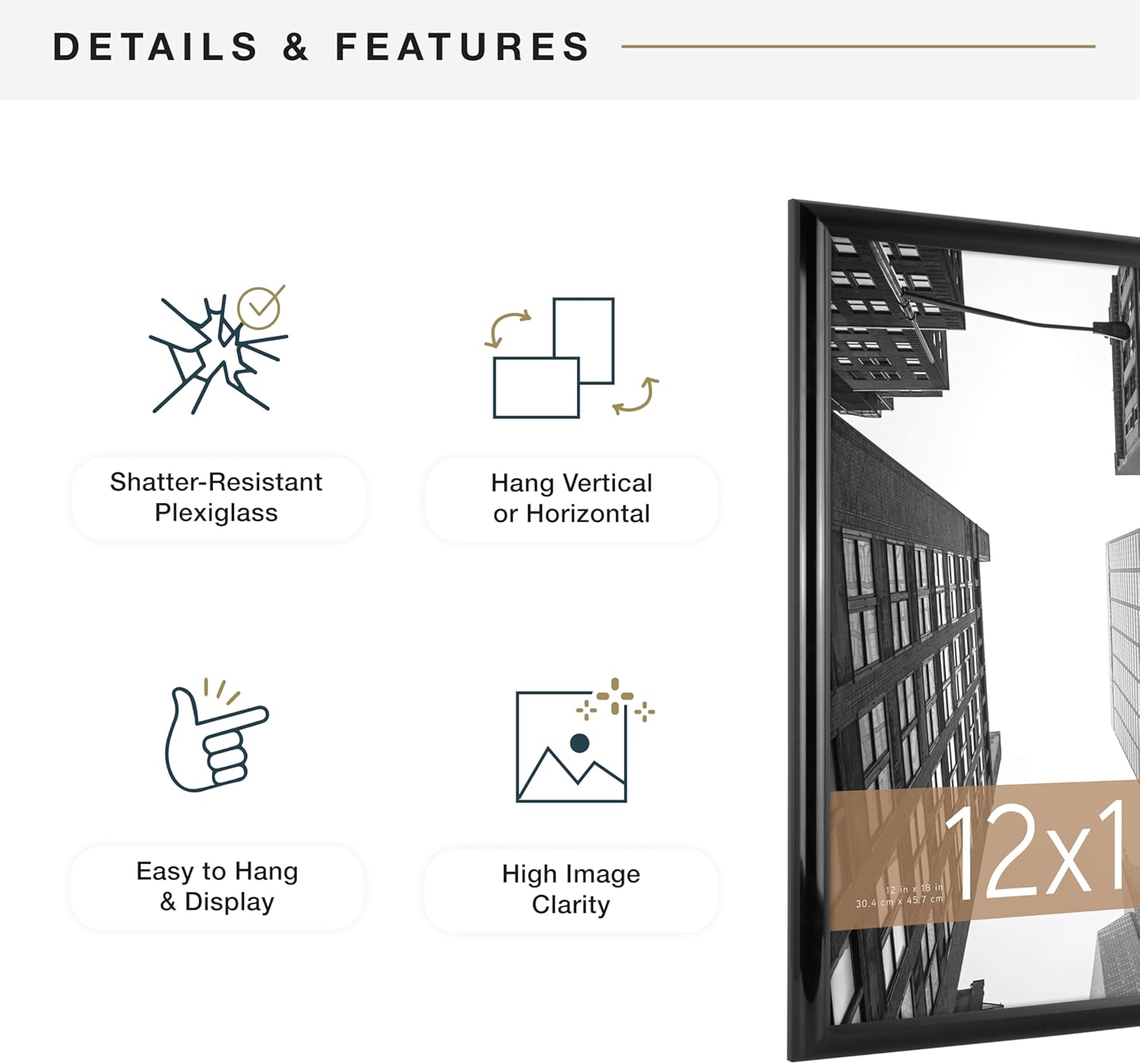 - QUALITY CONSTRUCTION: Each frame is constructed of durable extruded polystyrene material with a shatter resistant lightweight plastic protective front that helps prevent breakage