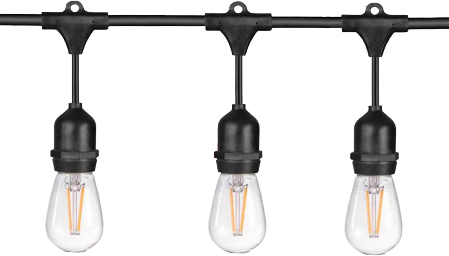 - DECORATIVE AND FUNCTIONAL - These charming string lights provide soft lighting for any space. Classic design with modern LED technology. Built-in loops above each socket (spaced 3 feet apart) for individual mounting or string through a cable to support and position sockets.