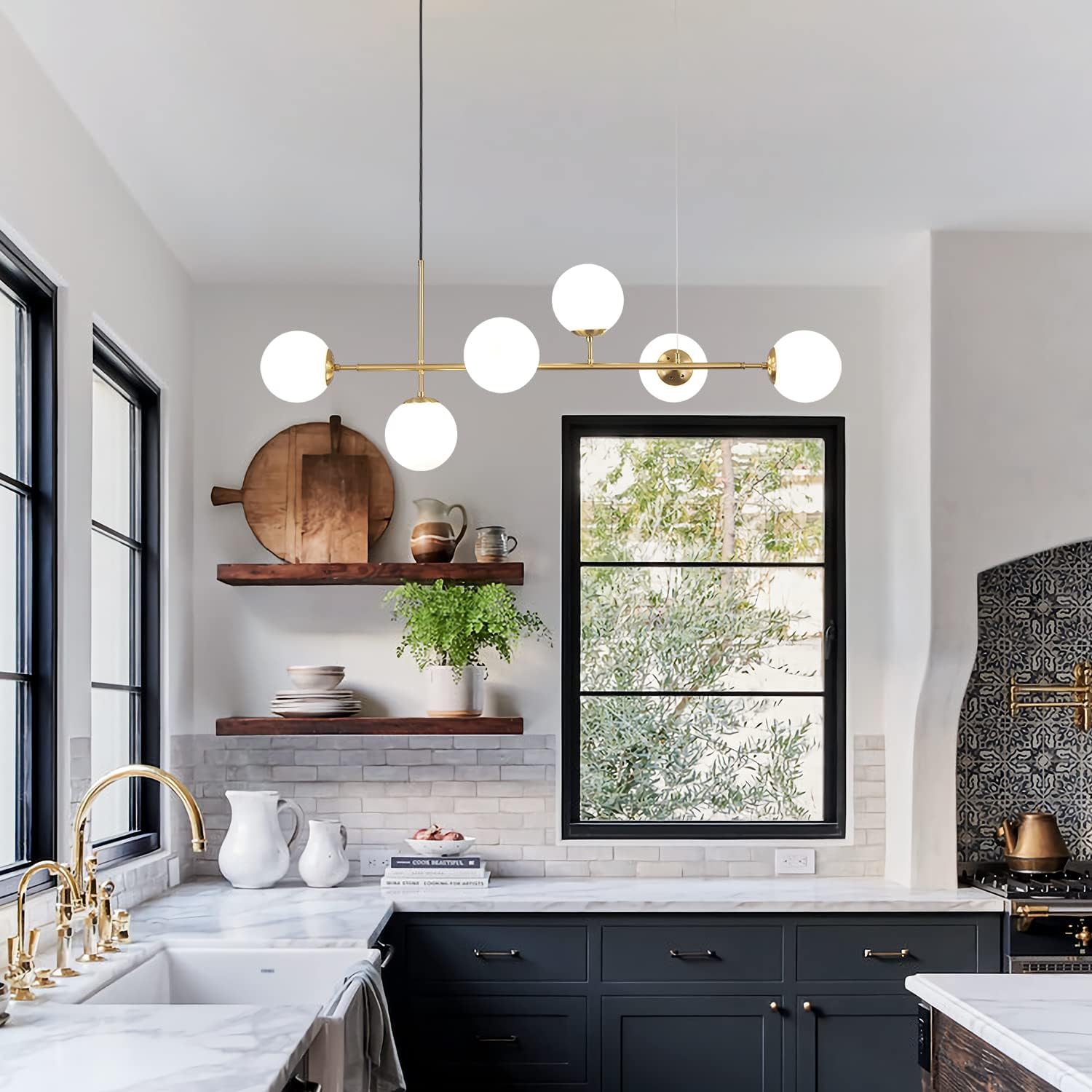 - Widely Application: The gold kitchen chandelier linear light fixture perfectly fits for living room, kitchen island, bedroom, dining room, kitchen sink, study room, guest room, master room, hallway, entryways, corridor foyer any room you like. The mid century modern dining chandelier is also good for office, coffee bar, lobby, restaurant