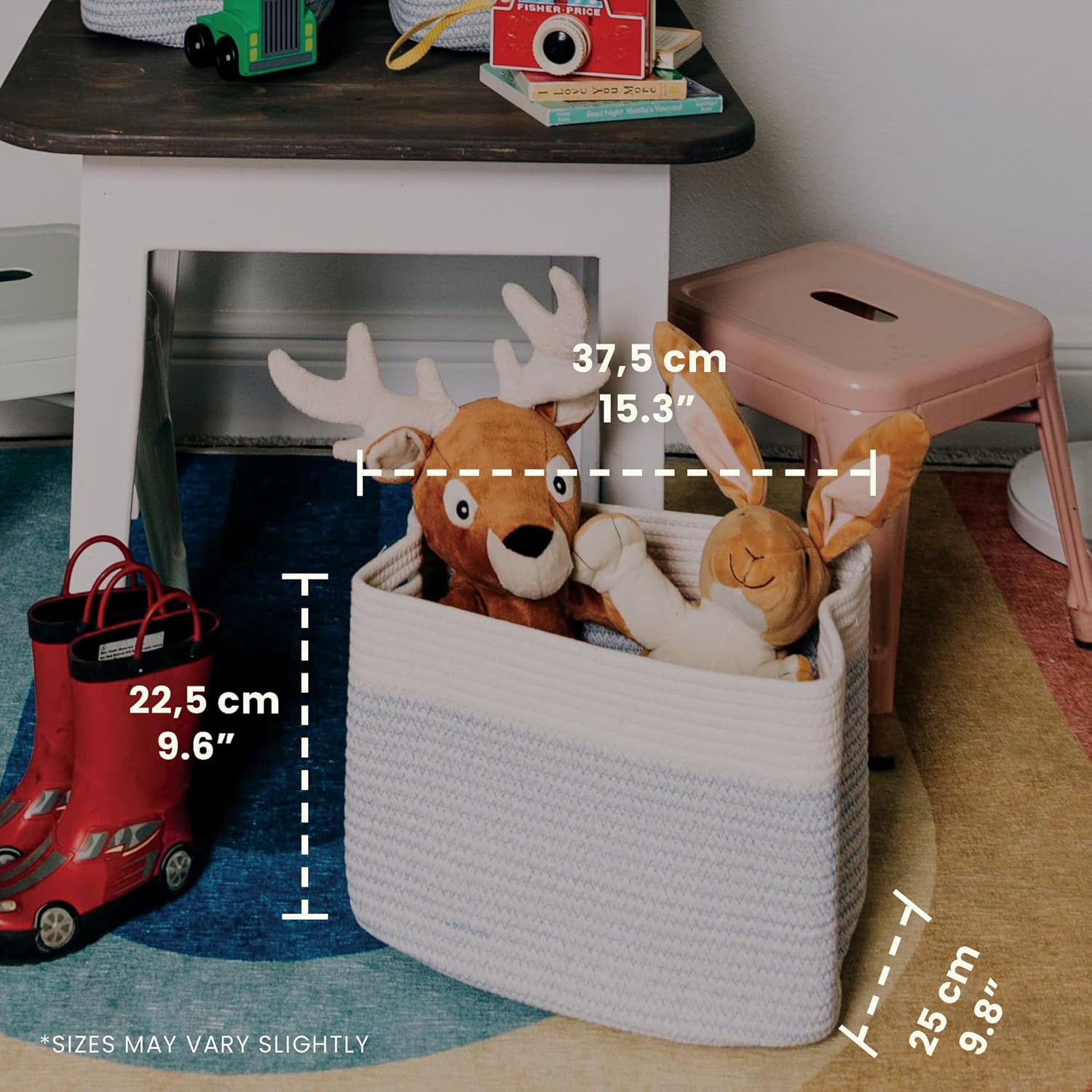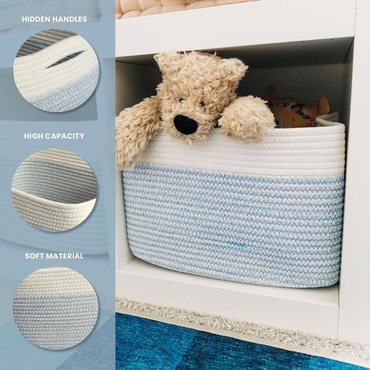 OrganiHaus Set of 3 Woven Storage Baskets for Organizing, Cotton Rope Organizer Bins for Shelves, Closet & Nursery, Dog Toy Basket, Decorative Bins for Toys, Towels & Books - 15x10x9, Blue/Off-White