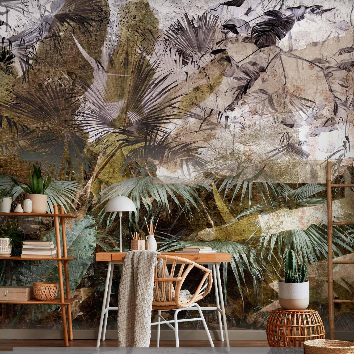 artgeist Wall Mural Tropical Leaves 98x69 in - XXL Non-Woven Wallpaper Fleece Wall Decor Photo Print Picture Image Design Jungle Nature Palm Leaves Like Painted b-C-0789-a-a