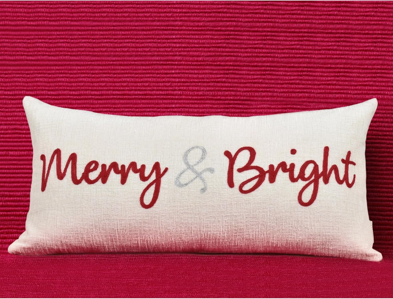 Nice Merry and Bright Christmas Decor Cotton Burlap Decorative Rectangle Throw Lumbar Waist Pillow Case Cushion Cover for Couch Living Room 12X24 inches
