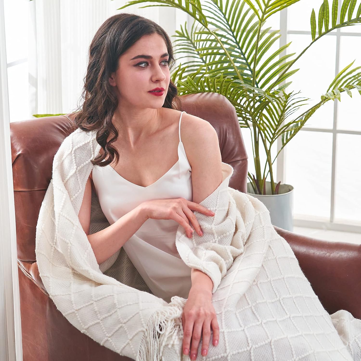 - 【GIFT IDEAS】: Special knitted diamond patterns add a unique accent to your room and people draping it as a shawl. Very suitable for tasteful homeowners. Throw blanket for women, classic but not too tacky as a housewarming gift. Tips: Due to different lighting, display settings, or resolutions, the difference in color happens. We are dying to show the color. To do so, one of the images shows the color difference in different lighting. Hope these instructions would help you to buy a throw.