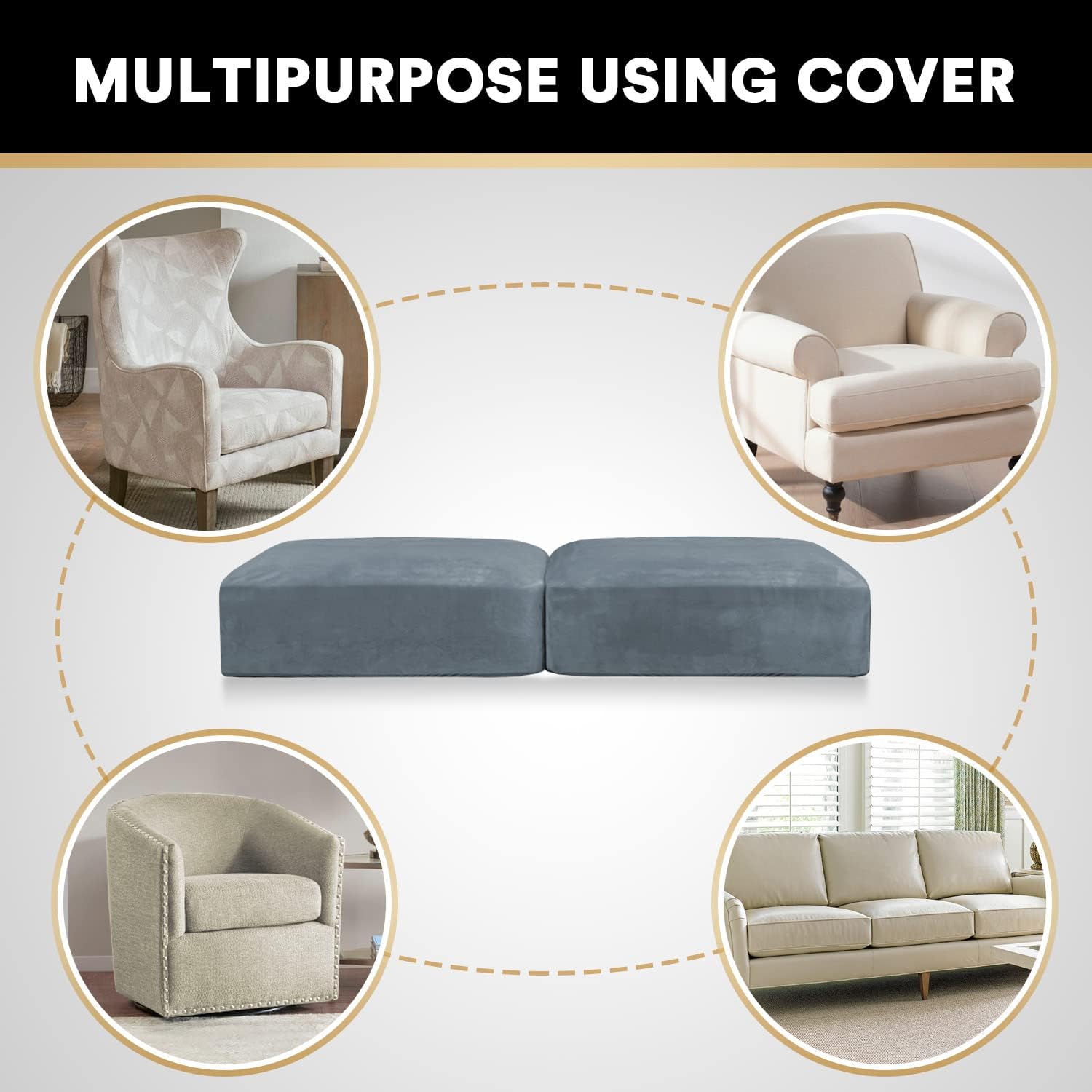 - PREMIUM VELVET:Crafted from real Velvet stretch fabric! Ultra soft, thick, cozy and durable,change with the seasons, and express your personality. Quickly and easily update your existing furniture. Accommodates a variety of shapes, surely fit both of T-cushions, Box cushions and L Shape cushion