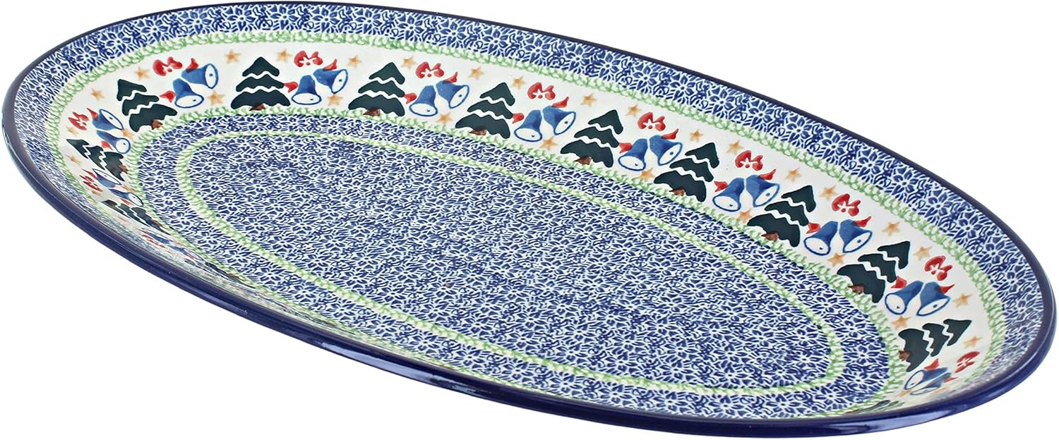 Blue Rose Polish Pottery Winter Bells Oval Platter
