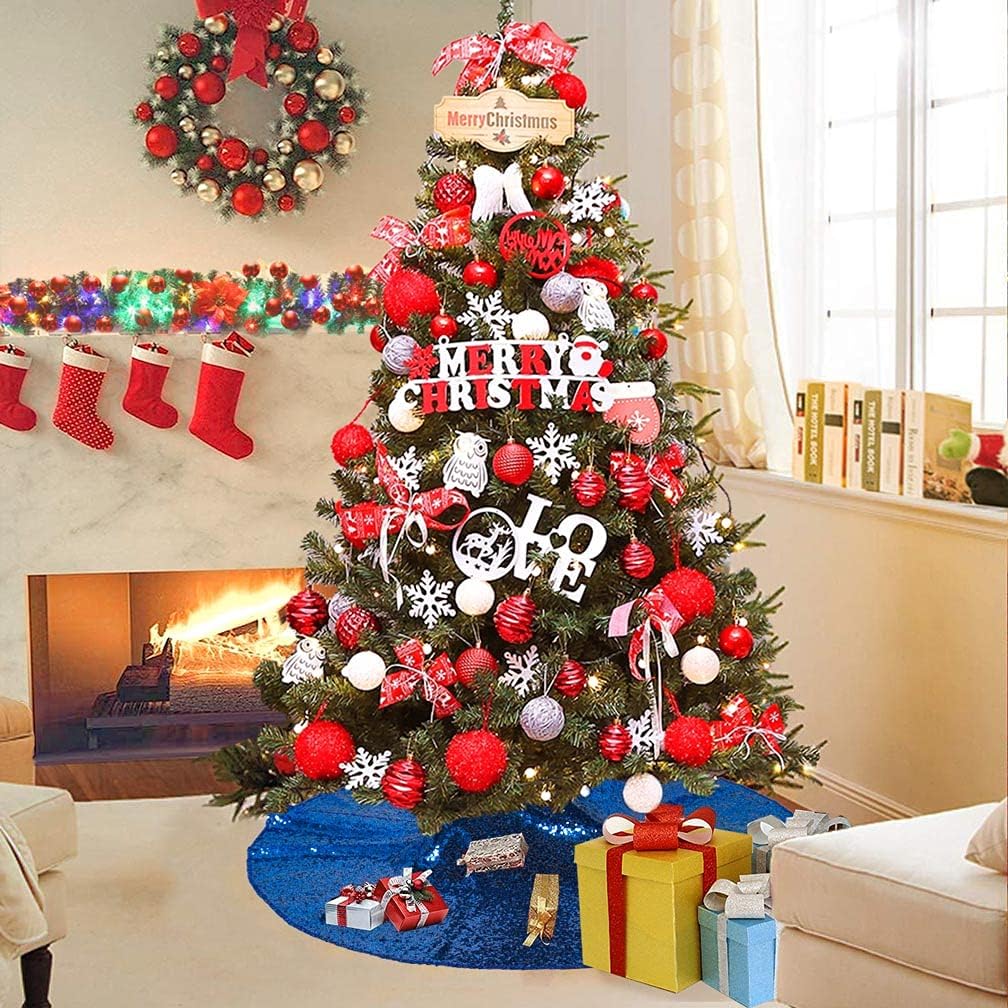 Partisout Sequin Christmas Tree Skirt - Glitter Cotton Colorful Skirt for Halloween (48 in, Royal Blue)