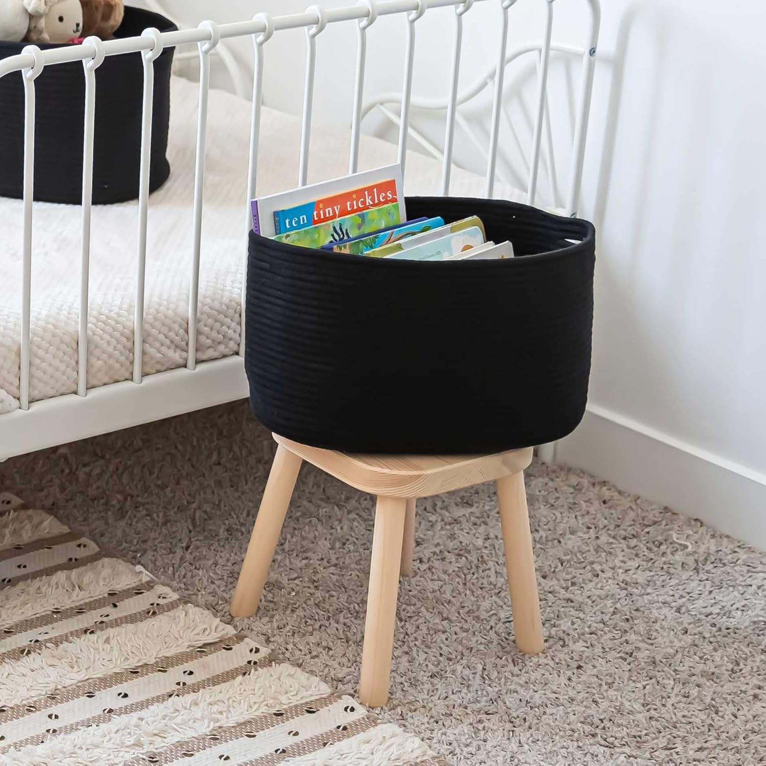 - Discrete, Built-In Carry Handles – These fabric rope baskets for storage also feature slim hand holds built right into the sides of each basket for a seamless look that’s also functional. Perfect for picking up toys or carrying items around the house.