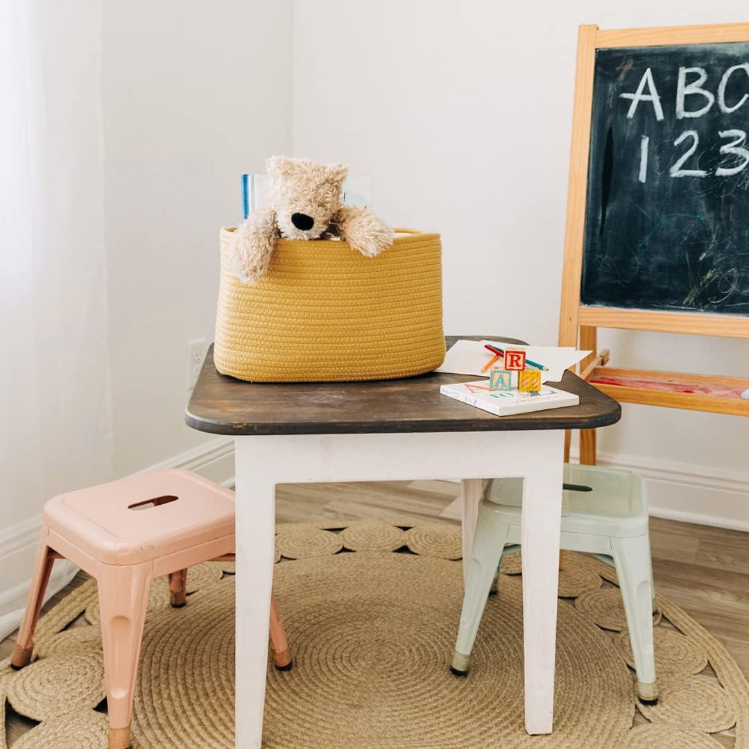 - All-Purpose Rainbow Storage Baskets – This 15” x 10” x 9” rainbow rope baskets for organizing is ideal for keeping your everyday home life more organized and provide plenty of compact storage space for arts and crafts, rainbow classroom decor, kid’s toys, or nursery room accessories