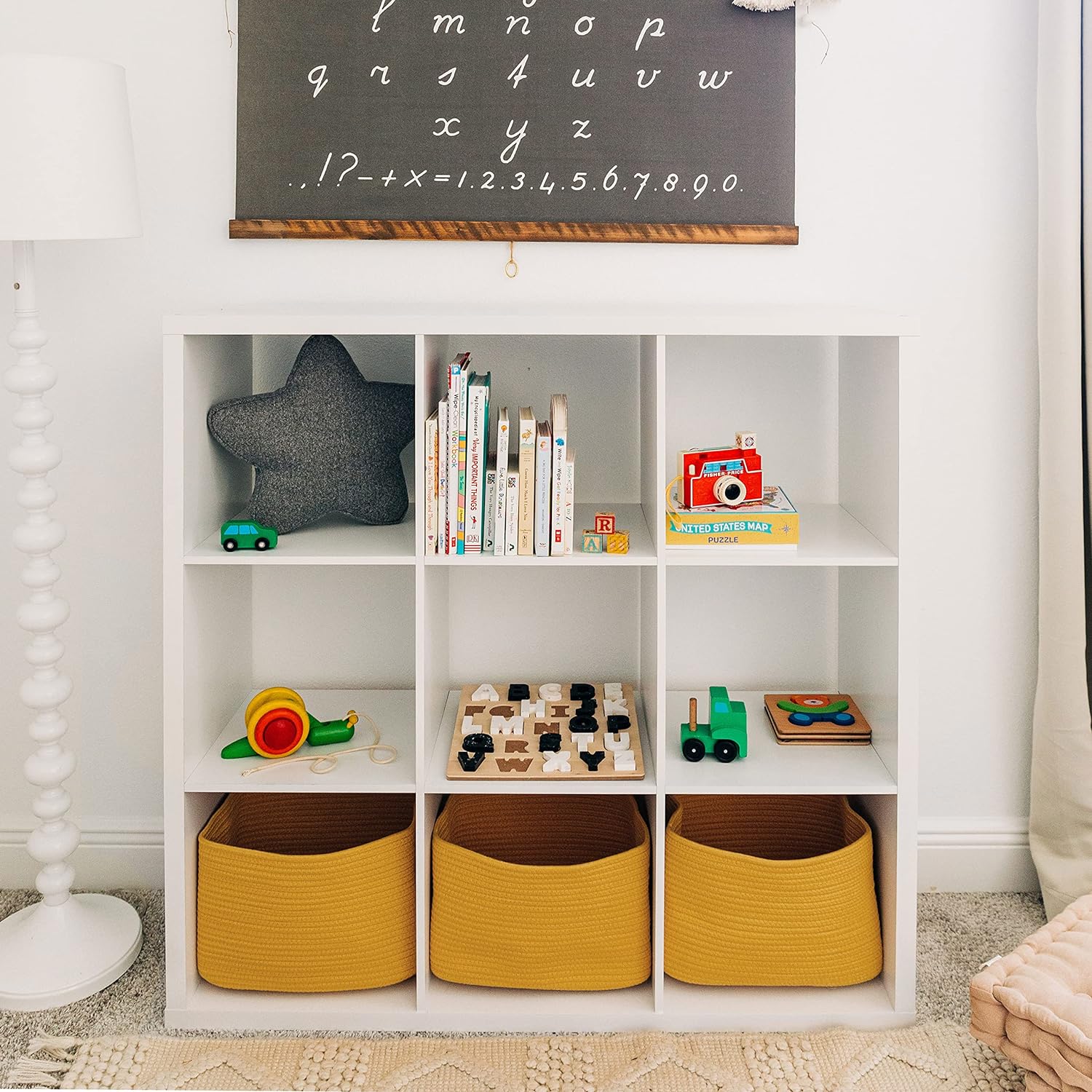 - Discrete, Built-In Carry Handles – These fabric rope baskets for storage also feature slim hand holds built right into the sides of each basket for a seamless look that’s also functional. Perfect for picking up toys or carrying items around the house.