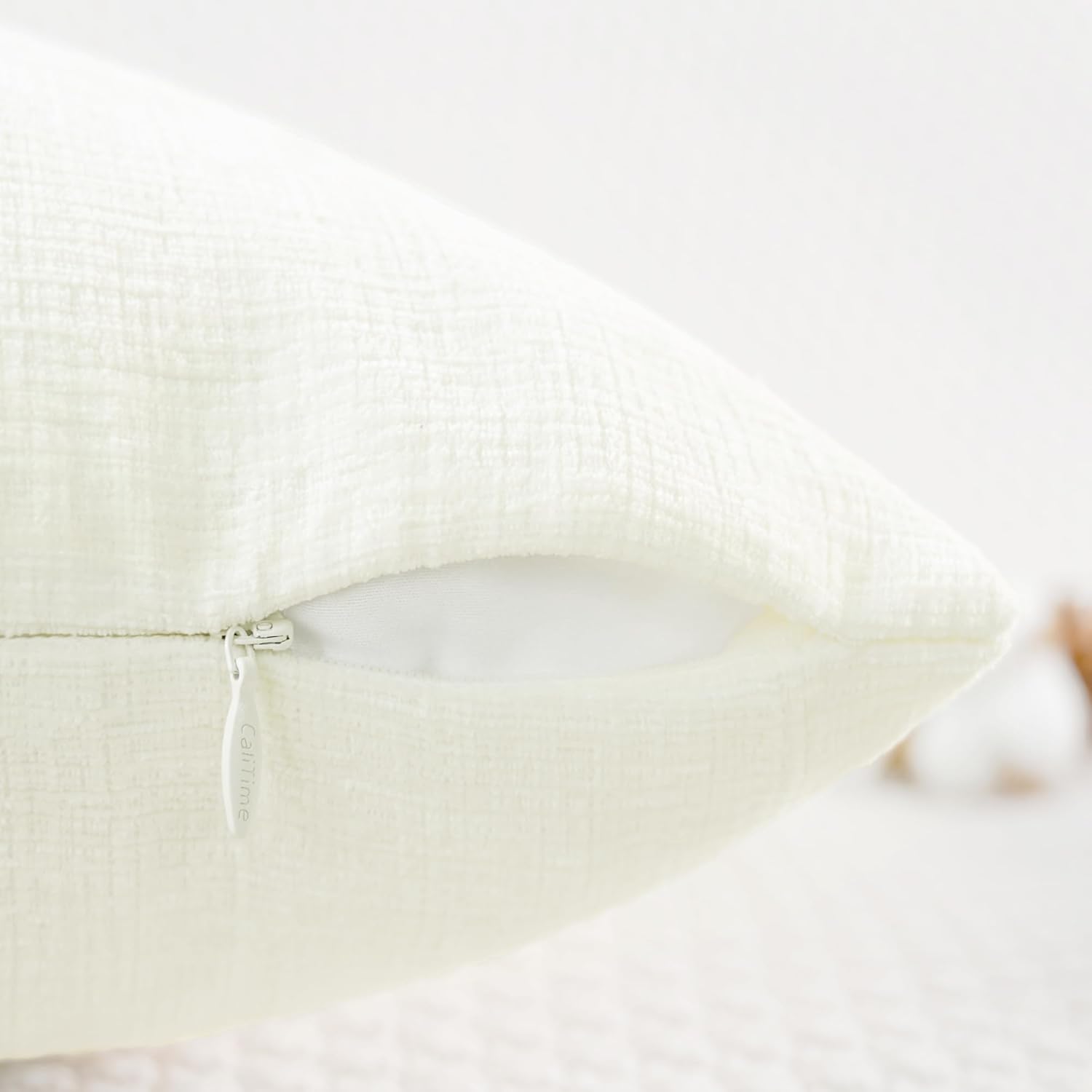 CaliTime Throw Pillow Covers Decorative 26 X 26 Inches Pack of 2 Cozy Chenille Cushion Cases for Couch Sofa Bed Living Room Home Cream