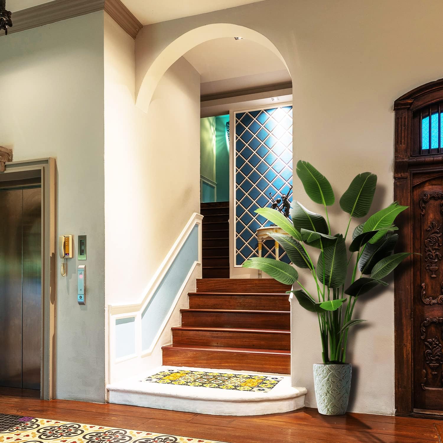 - 【STURDY AND ADJUSTABLE】 Our artificial silk bird of paradise palm tree outfitted with inner metal wires, you can adjust the leaves to the shape you like. This artificial plant will maintain its height, color and shape for years without pruning and shaping to ensure the aesthetic is maintained.