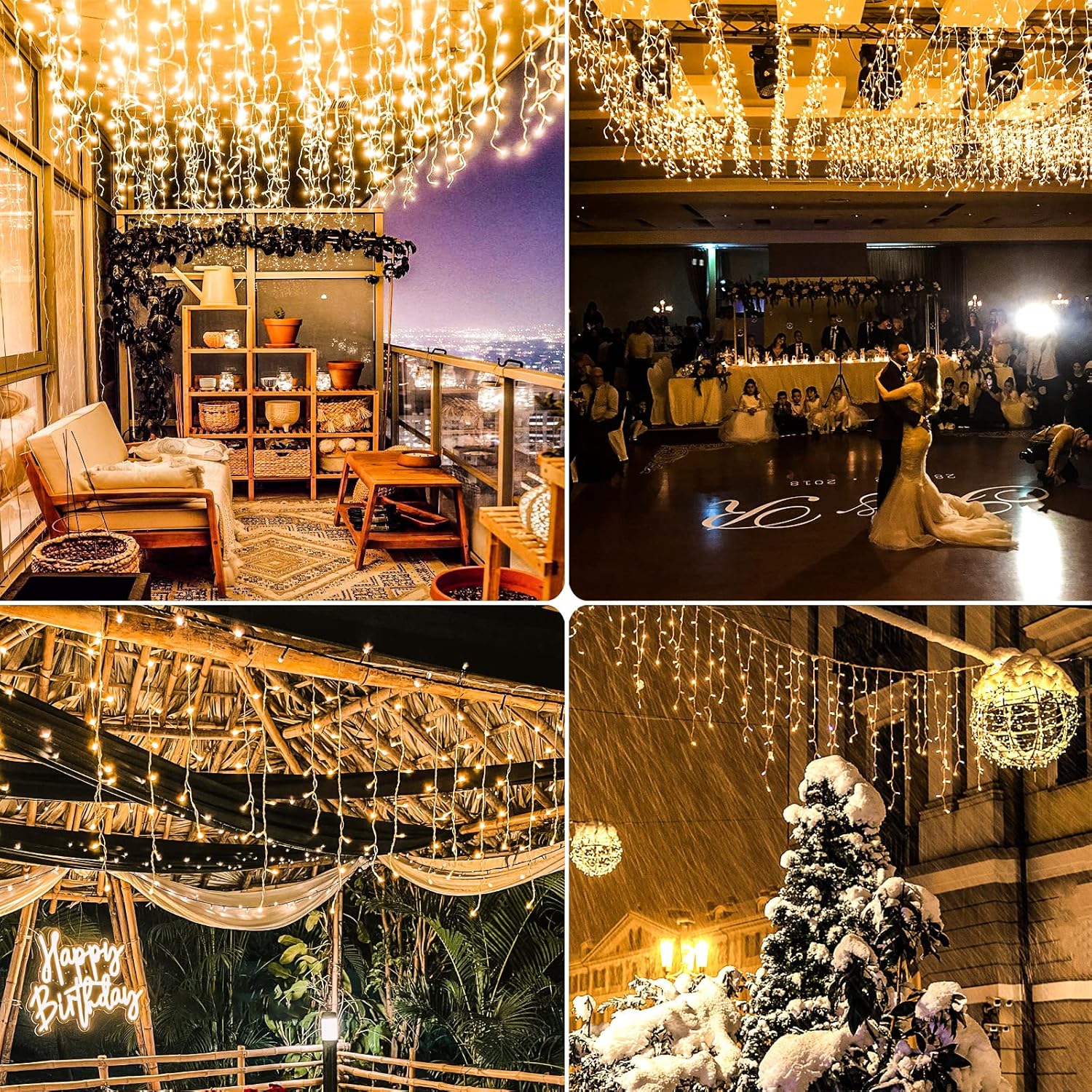 - [Easy to Install&Wide Application] The wires of the icicle Christmas lights are clear and without tangles, will not twist, very easy to install and lighter weight than the traditional lights. These icicle lights are perfect for outdoor, indoor, bathroom, handrail, fence, balcony, garden, roof line, deck railing decoration.