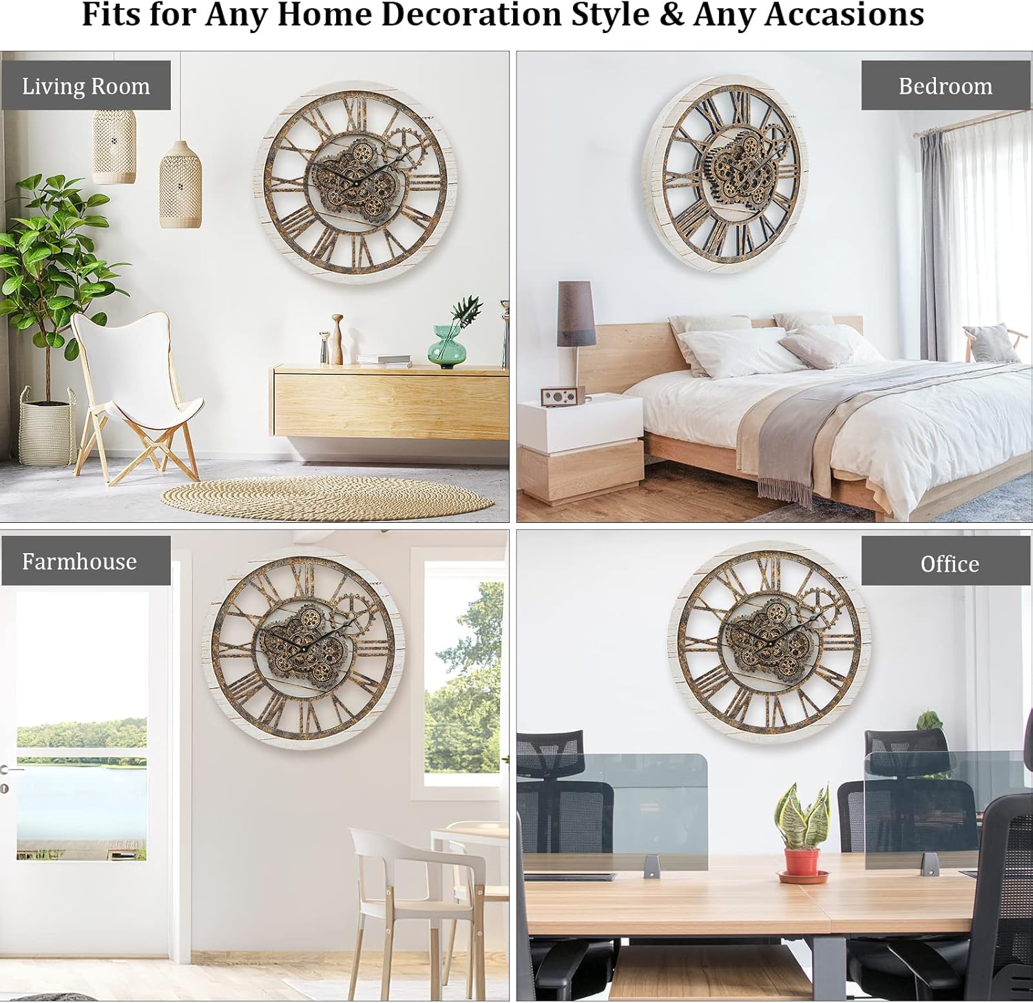 - ăClocks for Living Room Decoră It is not only a clock, but also a high value home decor for your living space to catching eyes. Bringing the highest qualities of craftsmanship retro decor into your home. The wall clock can be used in your room decor, living room, dining-room, farmhouse, bedroom, kitchen, entrance, stair, office, schools, hallway, bar, restaurant, coffee, clothing store etc. Perfect with any home style dĂ©cor such as modern, vintage, farmhouse, industrial, steampunk etc.