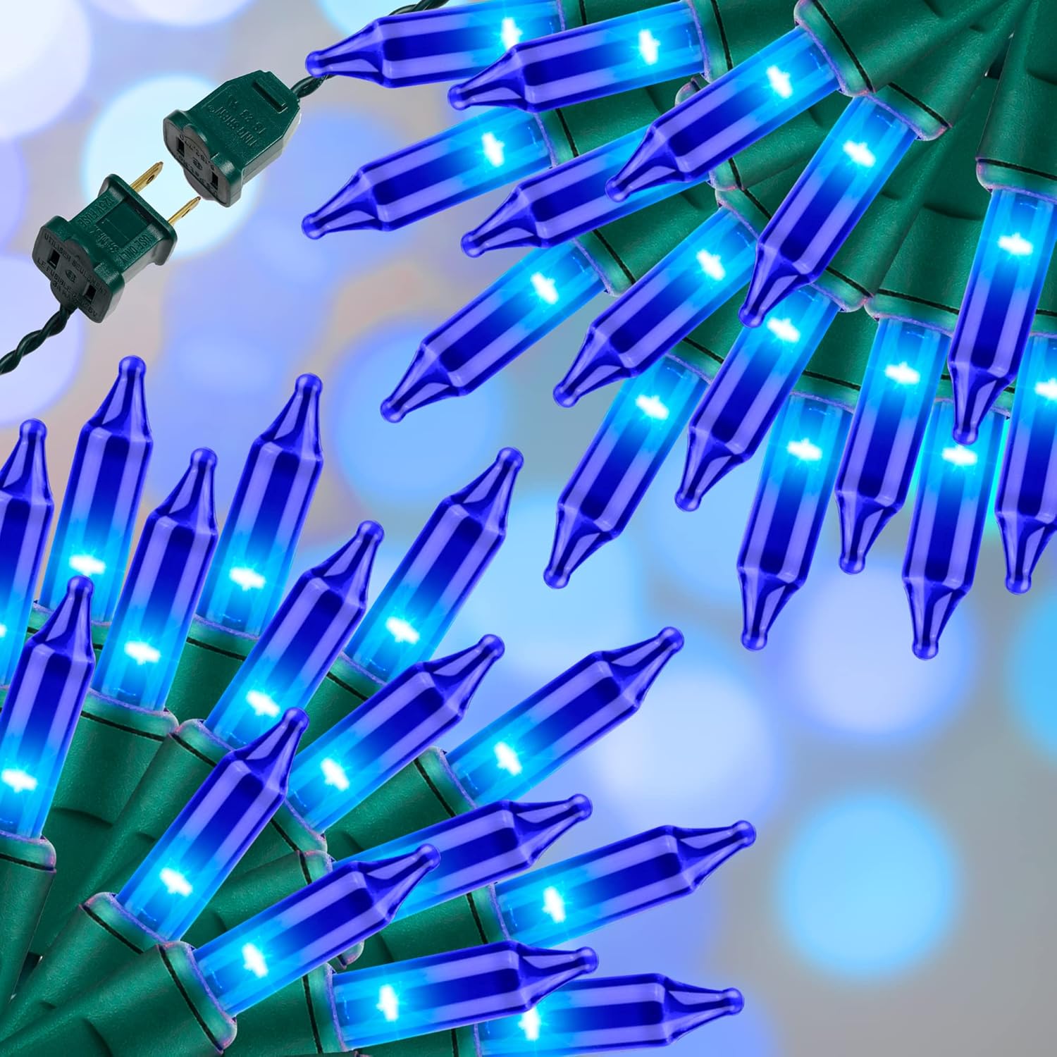 - Safty and Easily: High quality UL certified products ensure the safety of you and your family,Decorate with 100 blue incandescent mini lights with green wire will give a soft festive feel to your Christmas.
