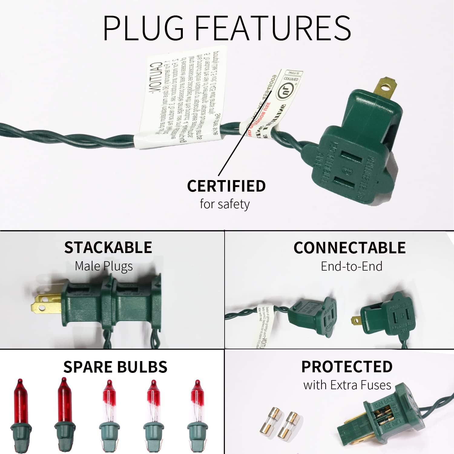 300LIGHTS(2*150L) RED Extra-Bright with End Connectors Christmas Decorative Lights 19.44m UL Certified Mini String Light Set Waterproof for Home Garden Holiday Tree Party Patio Decor Wedding