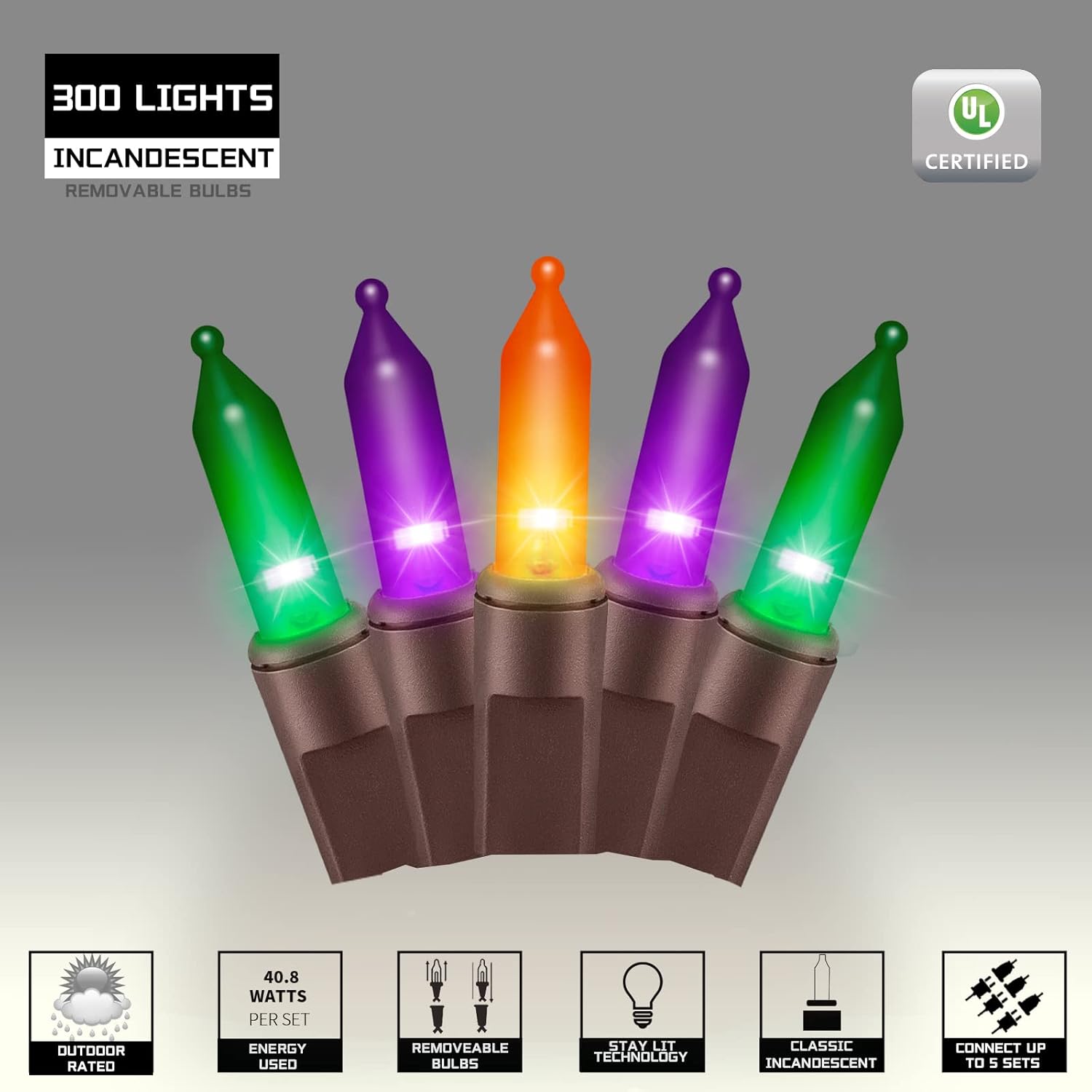 300LIGHTS(2*150L) ORANGE PURPLE and GREEN Extra-Bright With End Connectors Halloween Decorative Lights 19.44m UL Certified Mini String Light Set Waterproof for Halloween Home Garden Tree Party