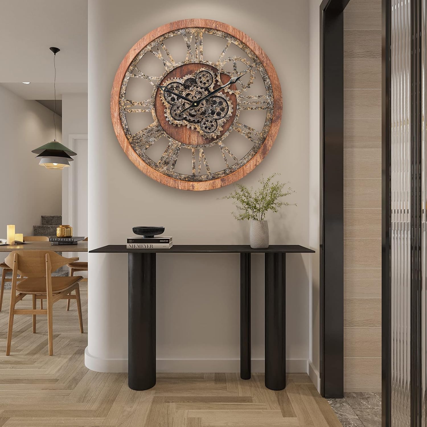 HOIBAI Large Wall Clock 24 Inch Large Clocks for Living Room Decor with Moving Gears Vintage Industrial Steampunk Farmhouse Big Clock for Home Kitchen Bedroom Office