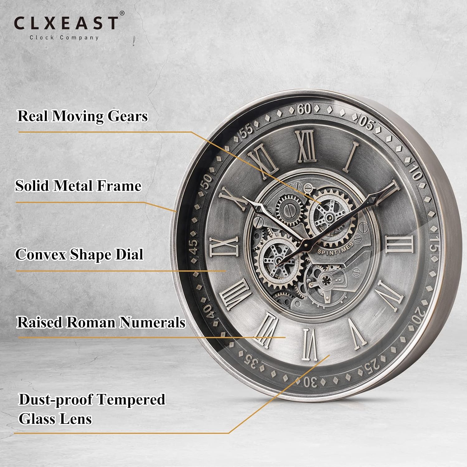 - Special Feature : Convex Shape Dial, Large Display, Mould Embossed Raised Bold Dial, Wall Clock with Moving Gears