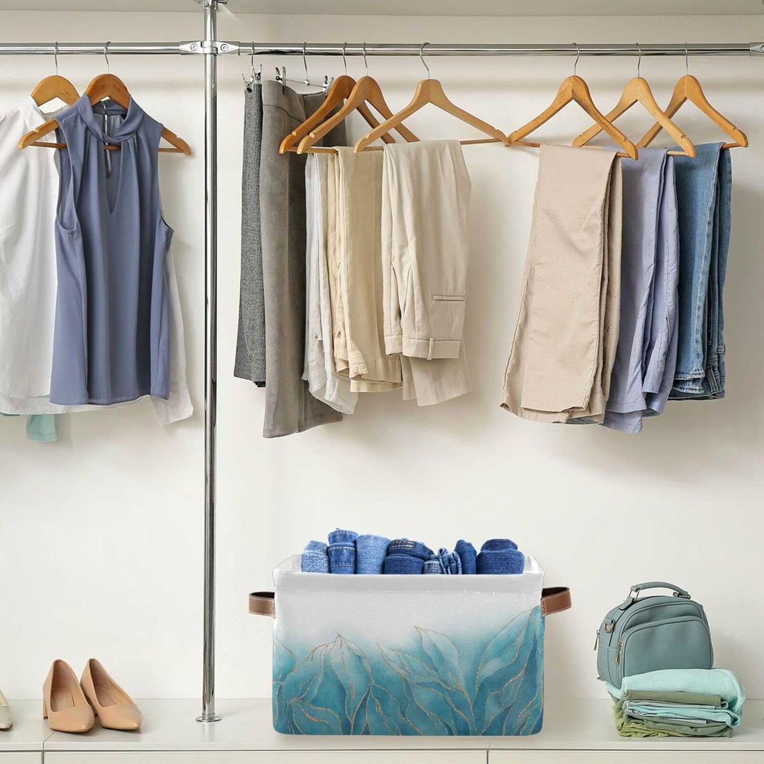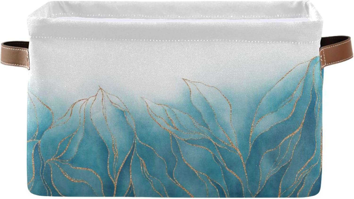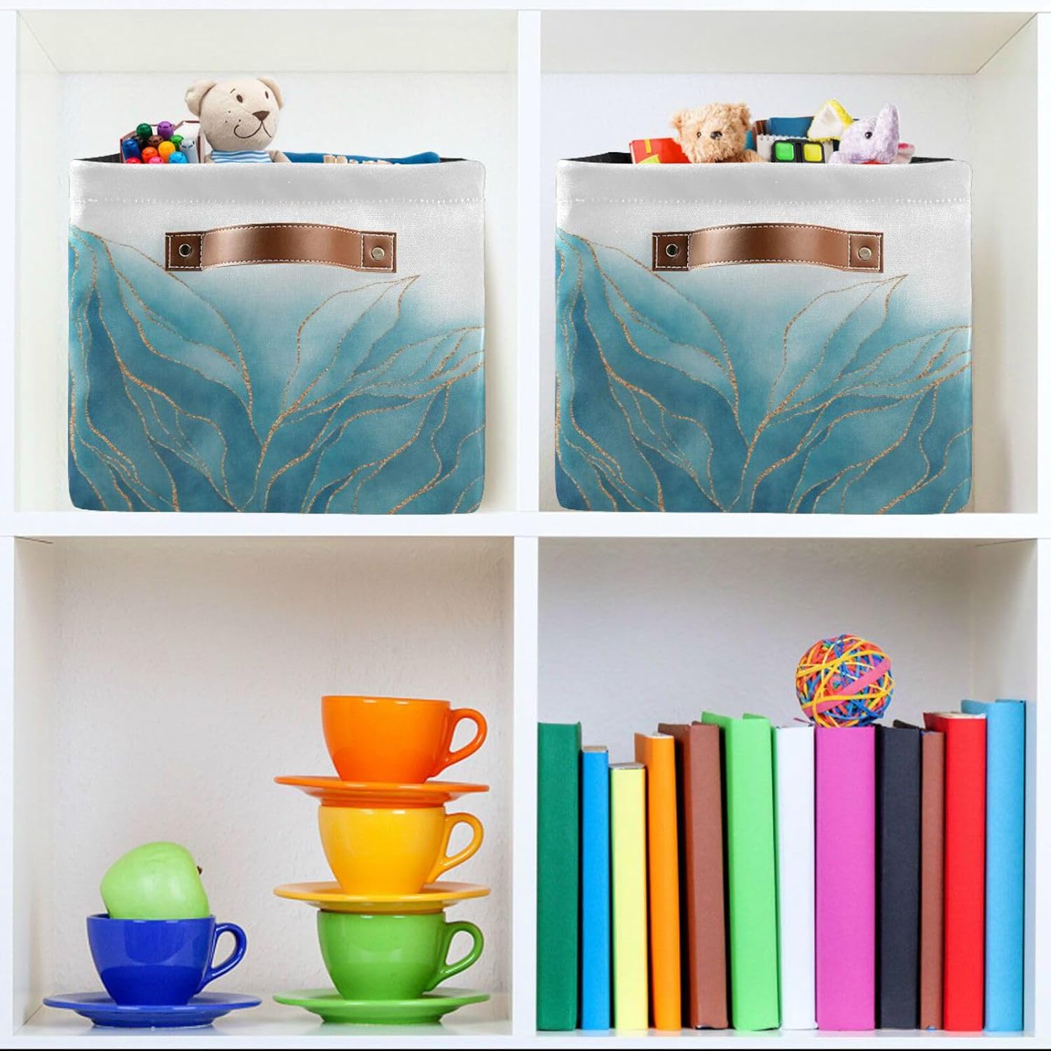 susiyo Storage Baskets for Shelves Closet Storage Bins for Organizing Shelf Nursery Toys, Decorative Linen Fabric Bins Cube with PU Handles 1 Pack,Luxury Blue Golden
