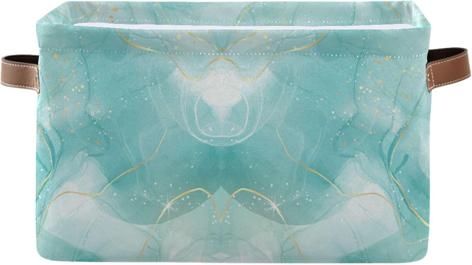 susiyo Large Foldable Storage Bin Storage Baskets for Shelves Storage Bins for Organizing Shelf Nursery Toys Decorative Linen Fabric Bins Cube with PU Handles 1 Pack,Green Marble