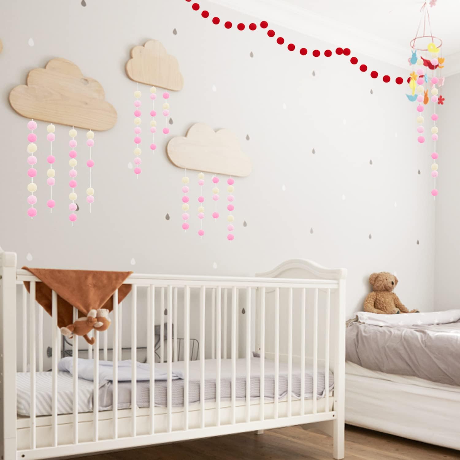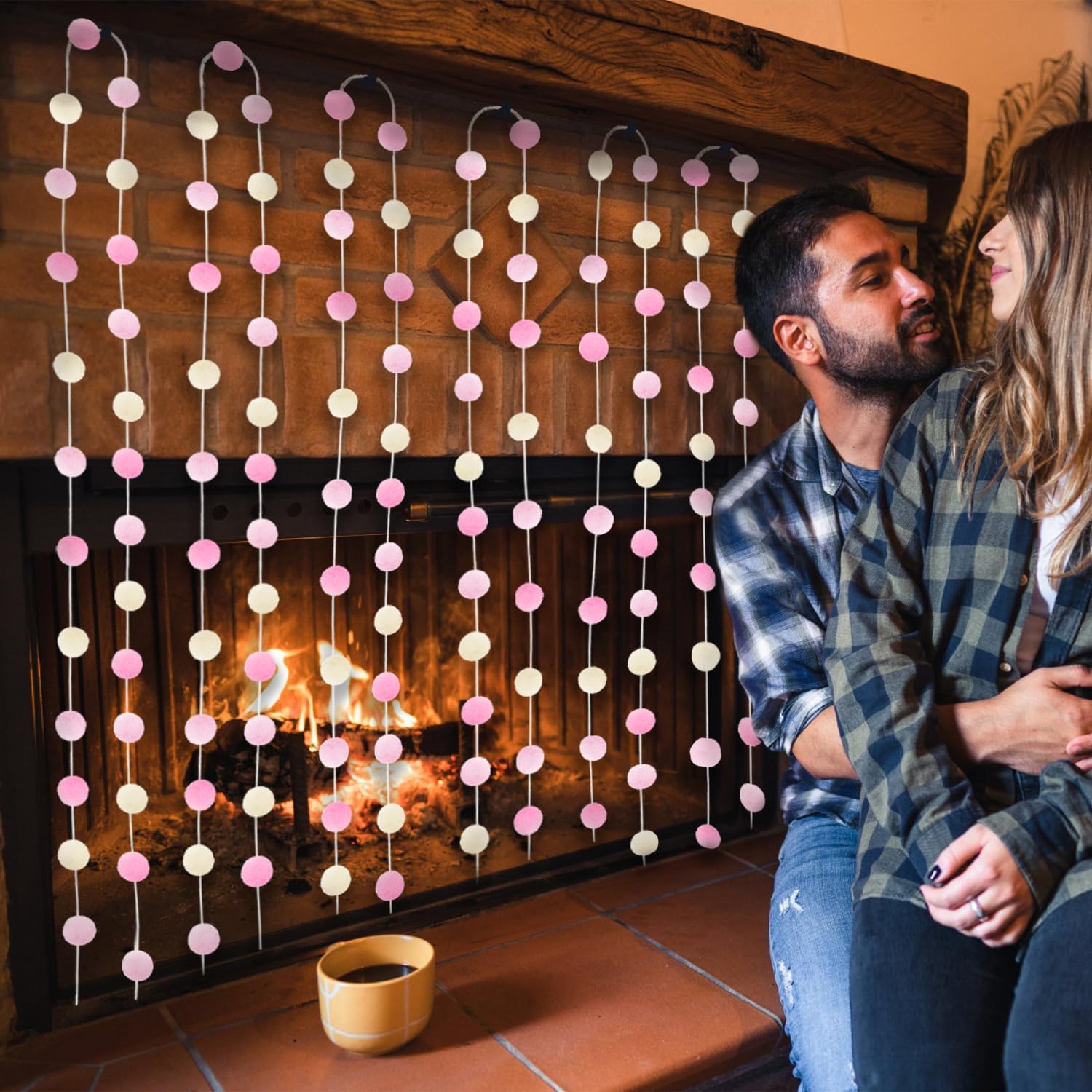 - OCCASIONS: Vintage modern style cute kawaii lovely special design, adding a warm rustic feel. It's easy to hang and can be hung anywhere, perfect funky eclectic decor for home, office, kids playroom, students classroom. The Pink Pom Pom Garland is a great Christmas decorations for indoor home, outdoor yard garden, living room, bedroom, stair railing, fireplace, ceiling, wall, door, window, gift basket, tree, mantle.