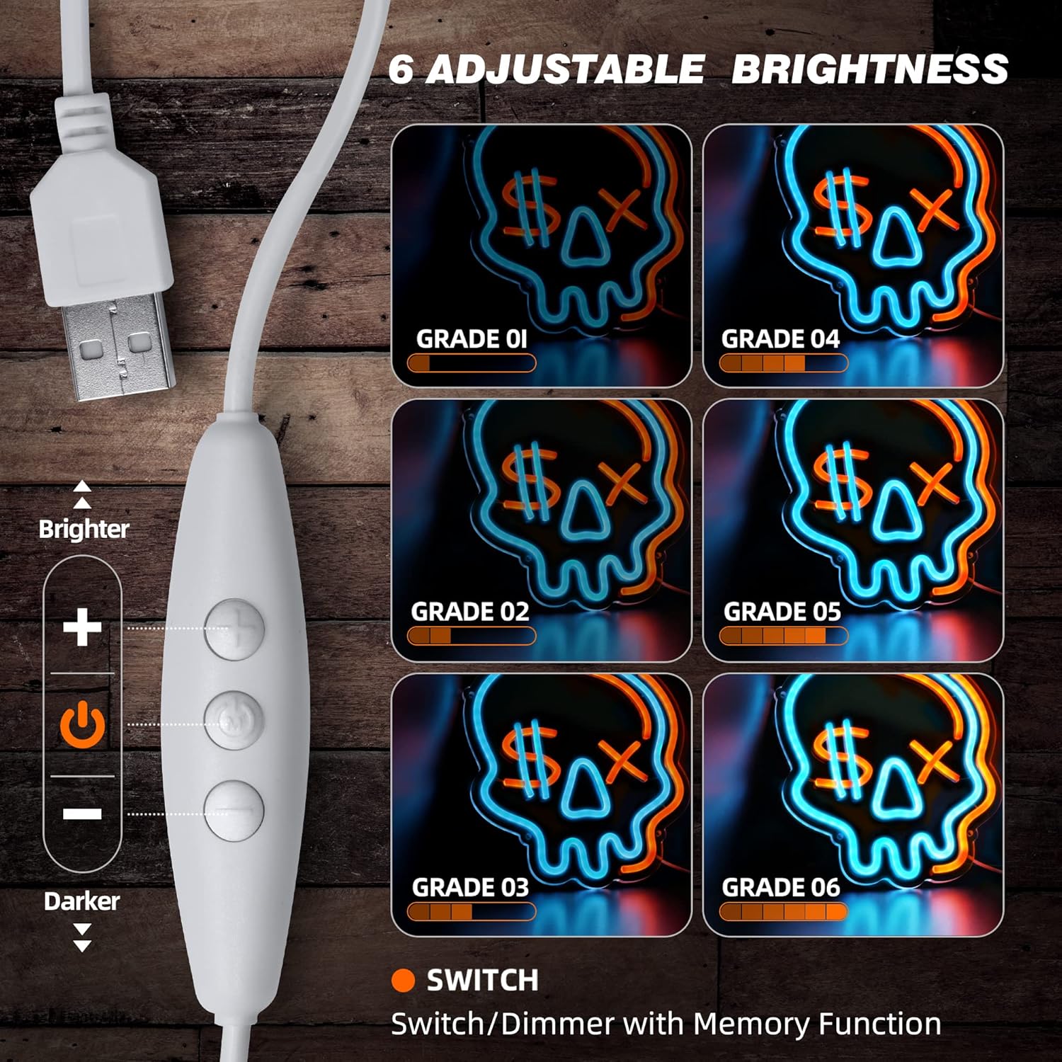 - 💀 6 Dimmable Switch: Our skeleton neon sign has 6 adjustable light modes, making it a great wall decoration that can replace boring desk lamps and add some color to a boy's playroom. It's perfect as a birthday or Christmas gift for your family, significant other, boyfriend, kids, and more.