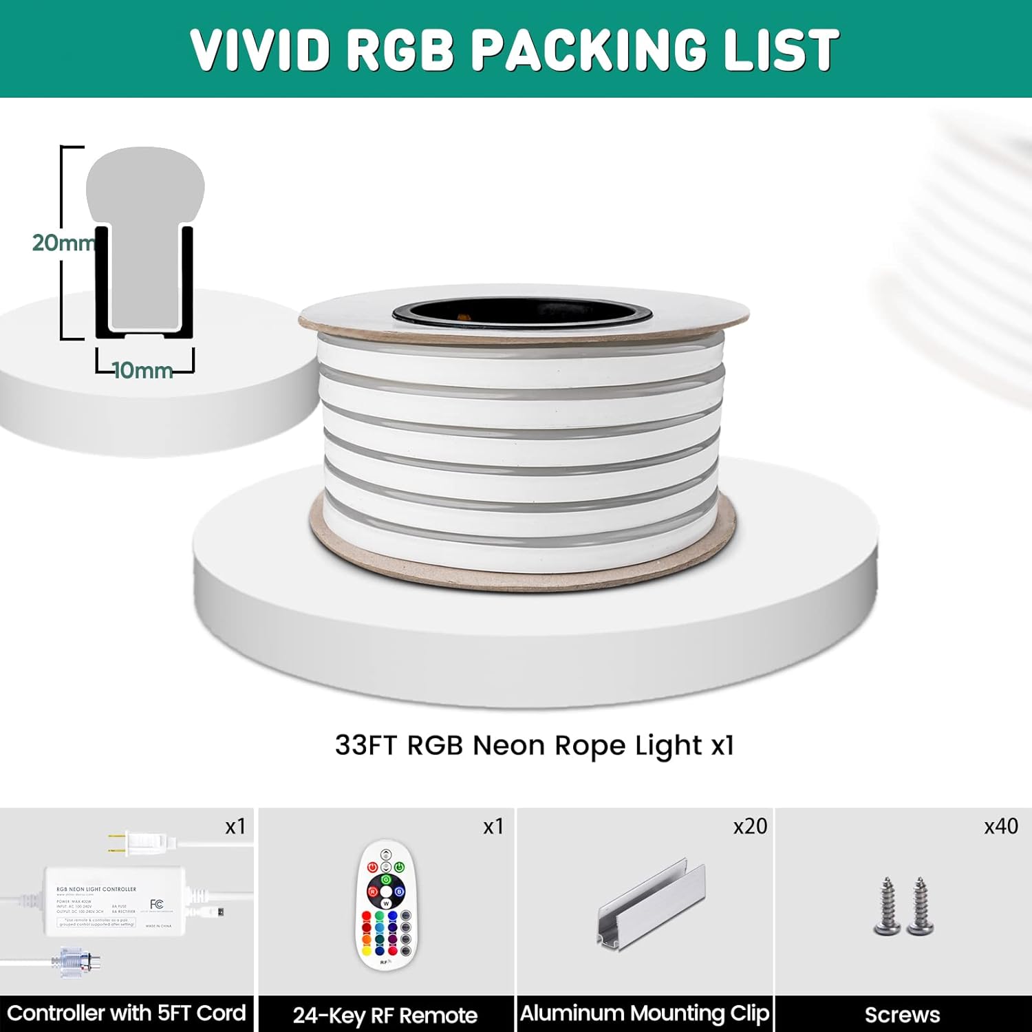- Remote Sync & Command--Control up to 4 neon ropes with one remote! Effortlessly pair multiple strips for perfectly synchronized colors, effects, and brightness—ideal for large-scale setups. The 24-key RF remote controls 16 static colors, speed, and 4 dynamic modes within a range of 66 ft. NOTE: This is NOT color chasing Light.